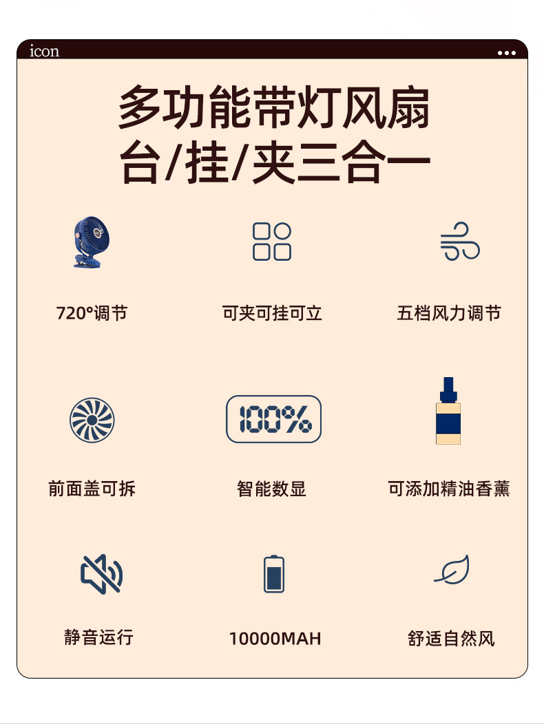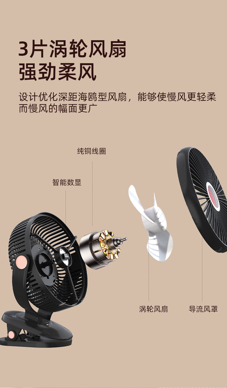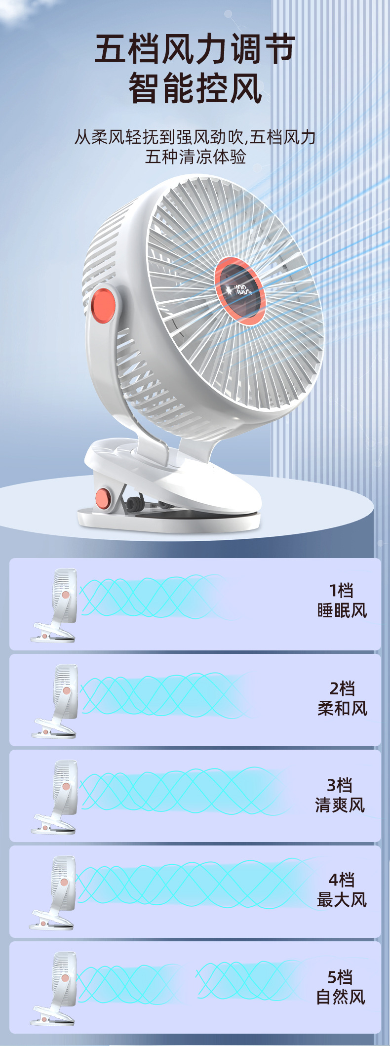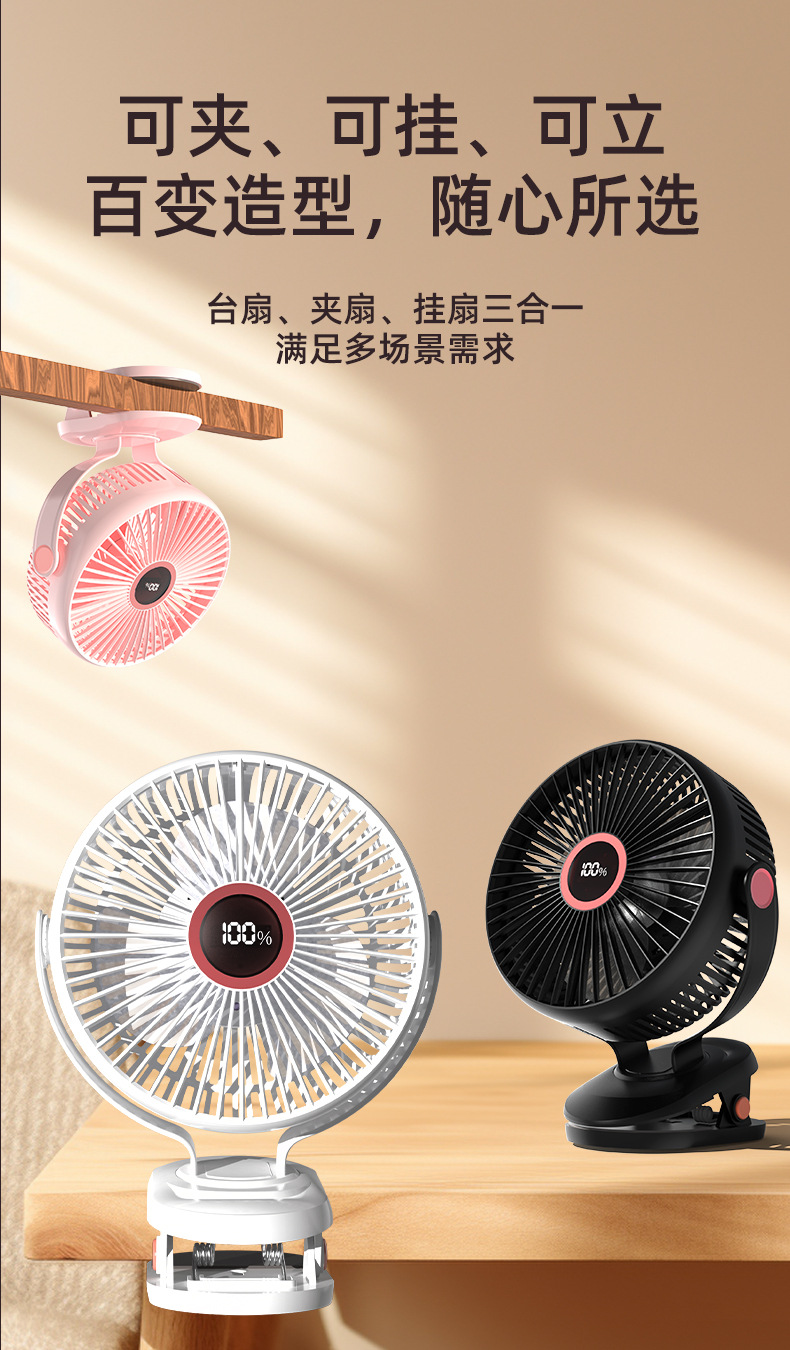 新款8寸氛围灯夹子风扇家用办公室大风力静音跨境usb桌面小电风扇