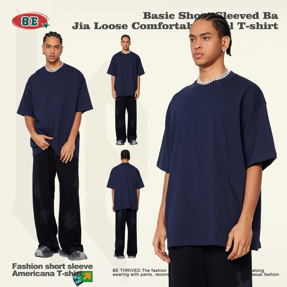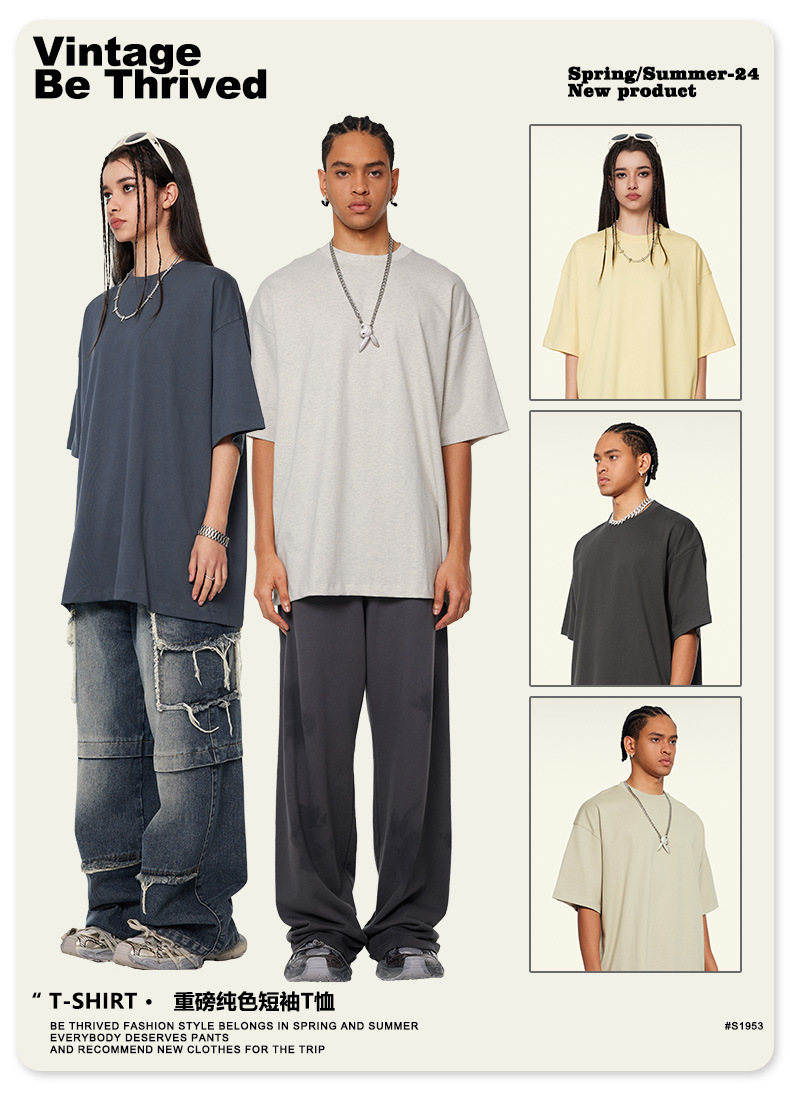 BE男装2025新款潮牌重磅345G基础款短袖纯棉宽松休闲t恤夏季t恤男