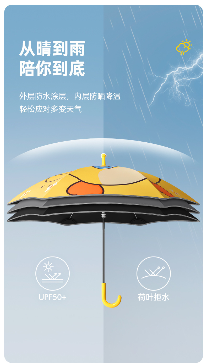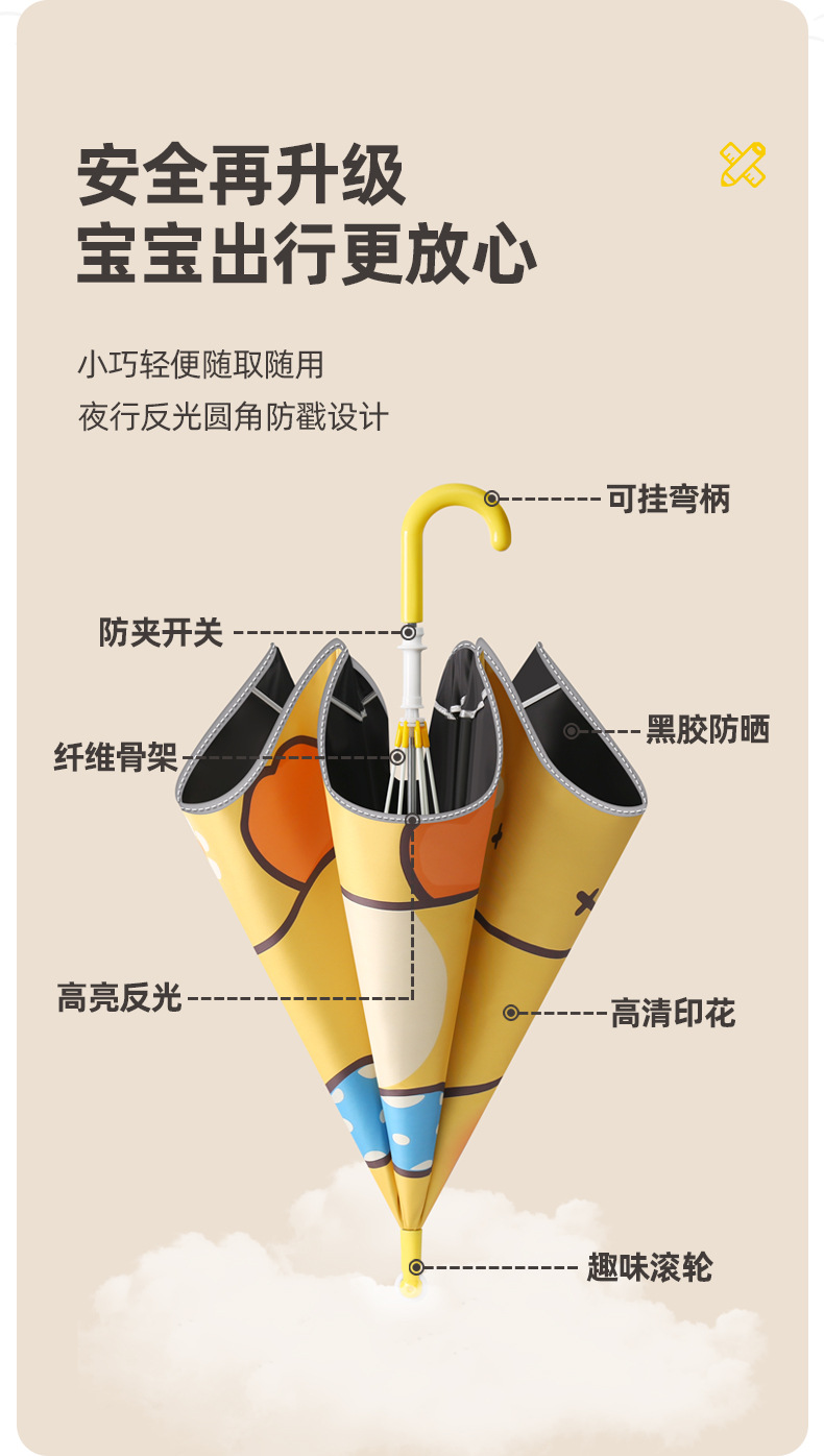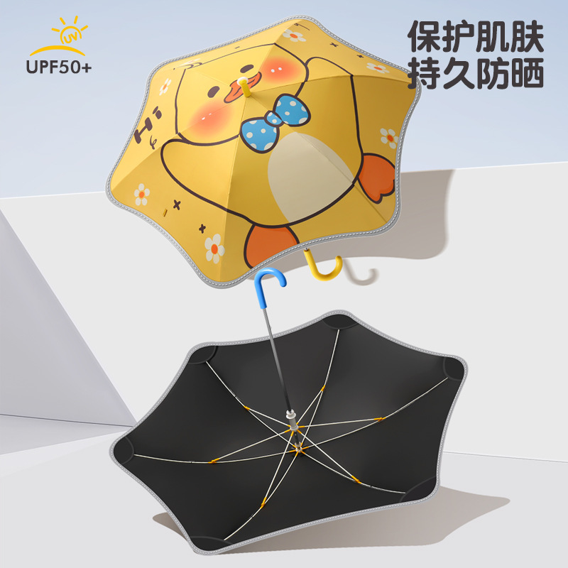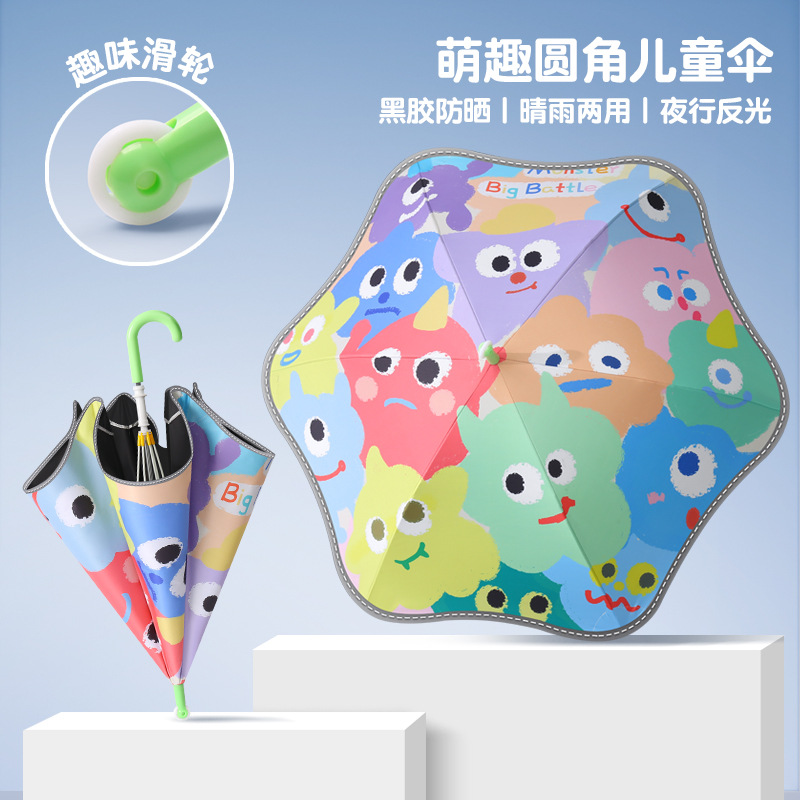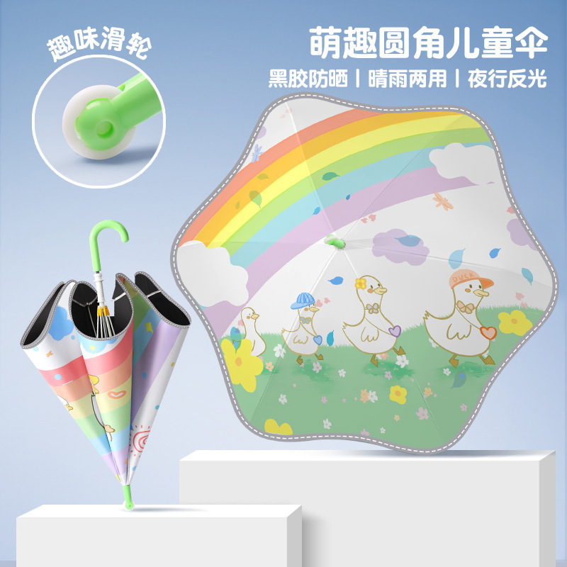 滑轮圆角儿童晴雨两用伞男女小孩子学生上学长柄直杆伞伞防紫外线