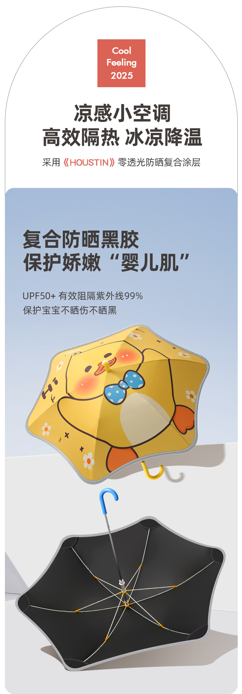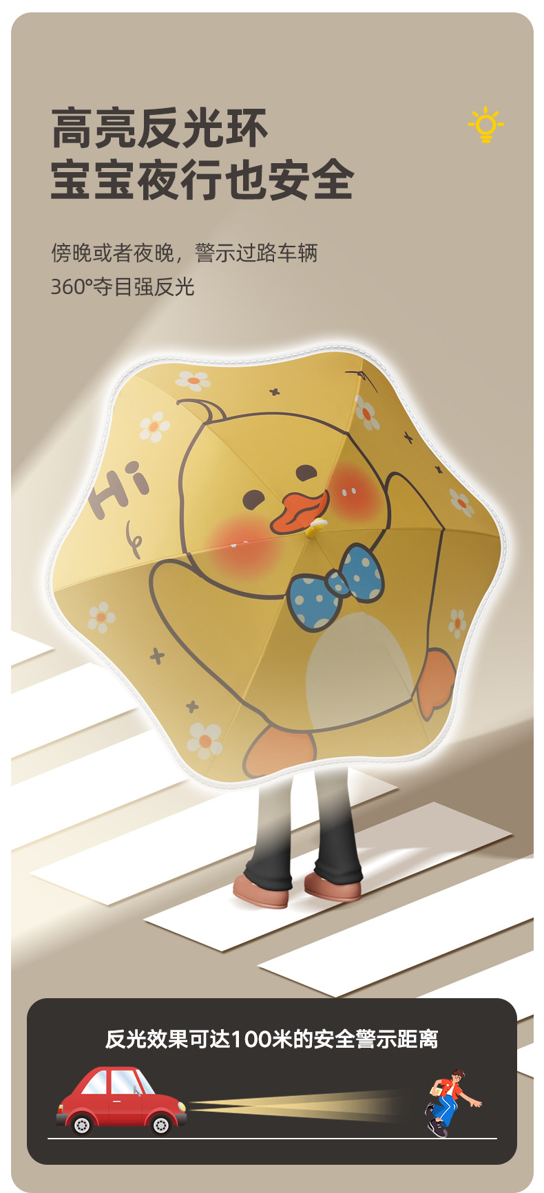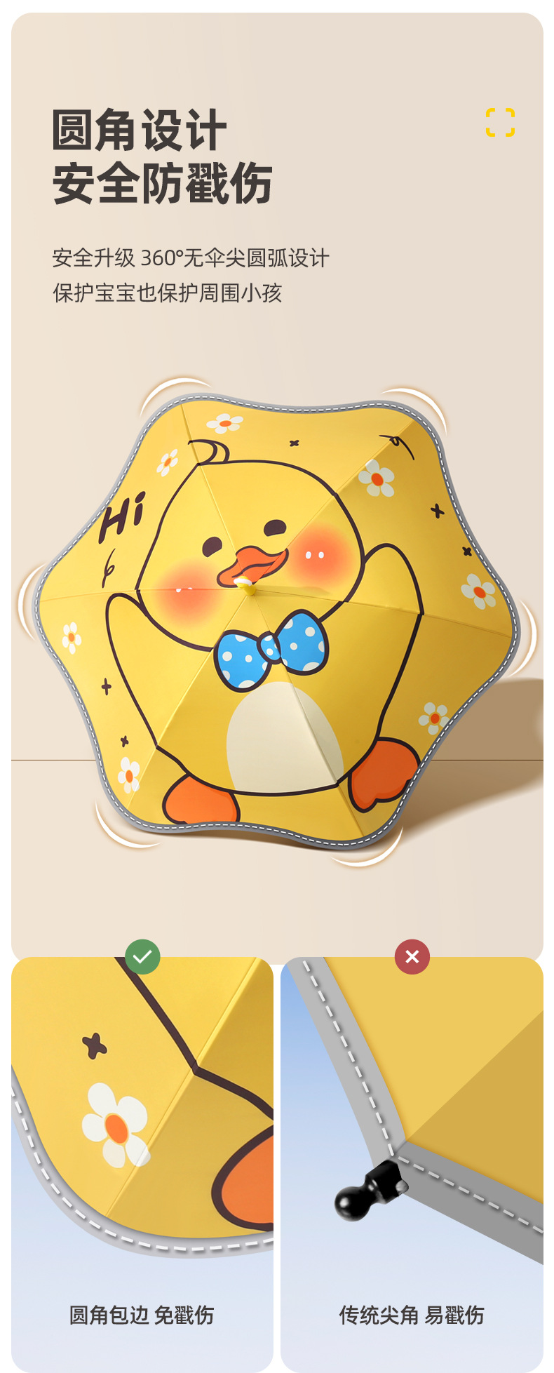 滑轮圆角儿童晴雨两用伞男女小孩子学生上学长柄直杆伞伞防紫外线