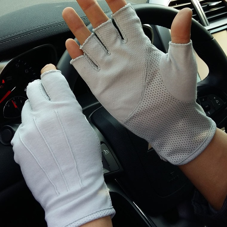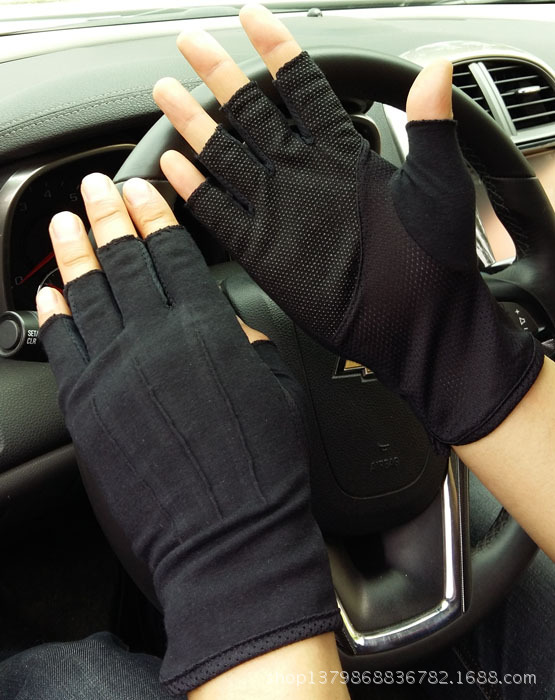 开车防晒手套男薄款半指棉手套半截春夏骑车露指手套透气