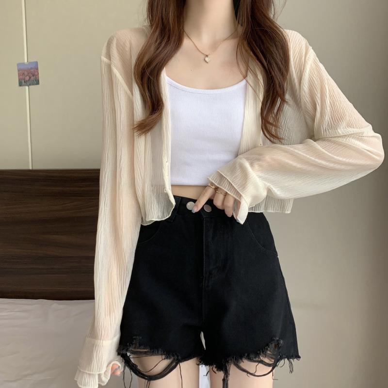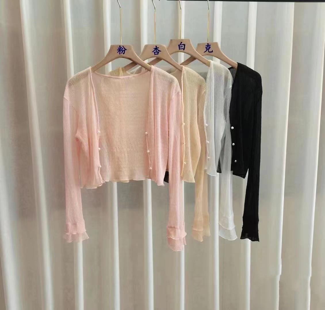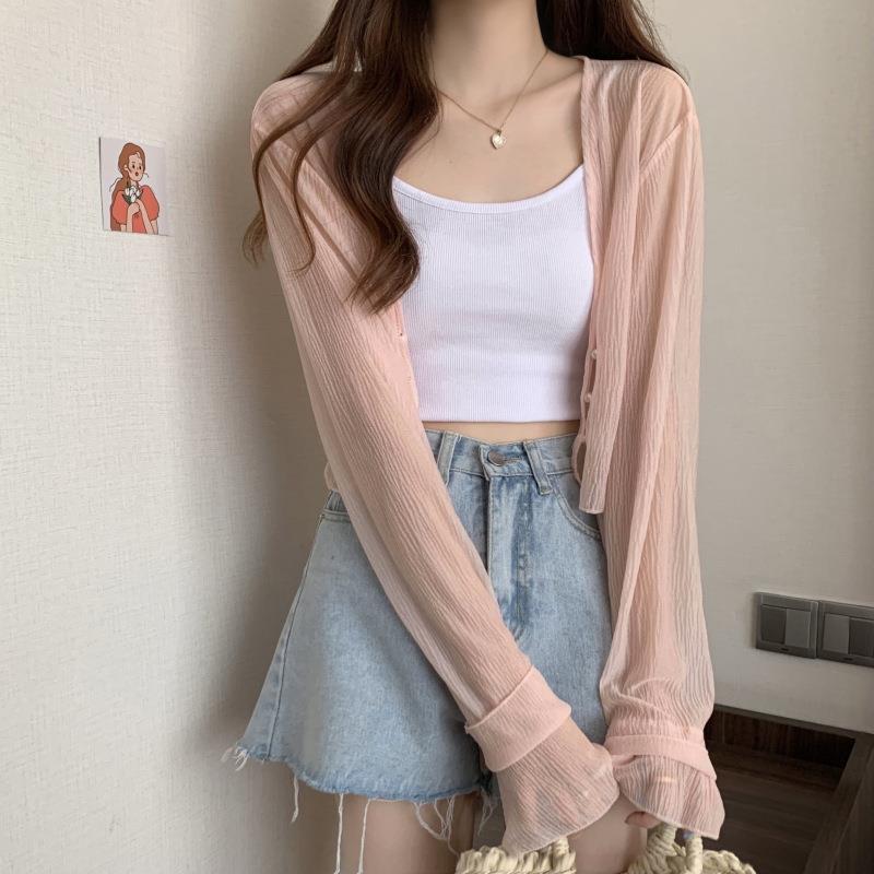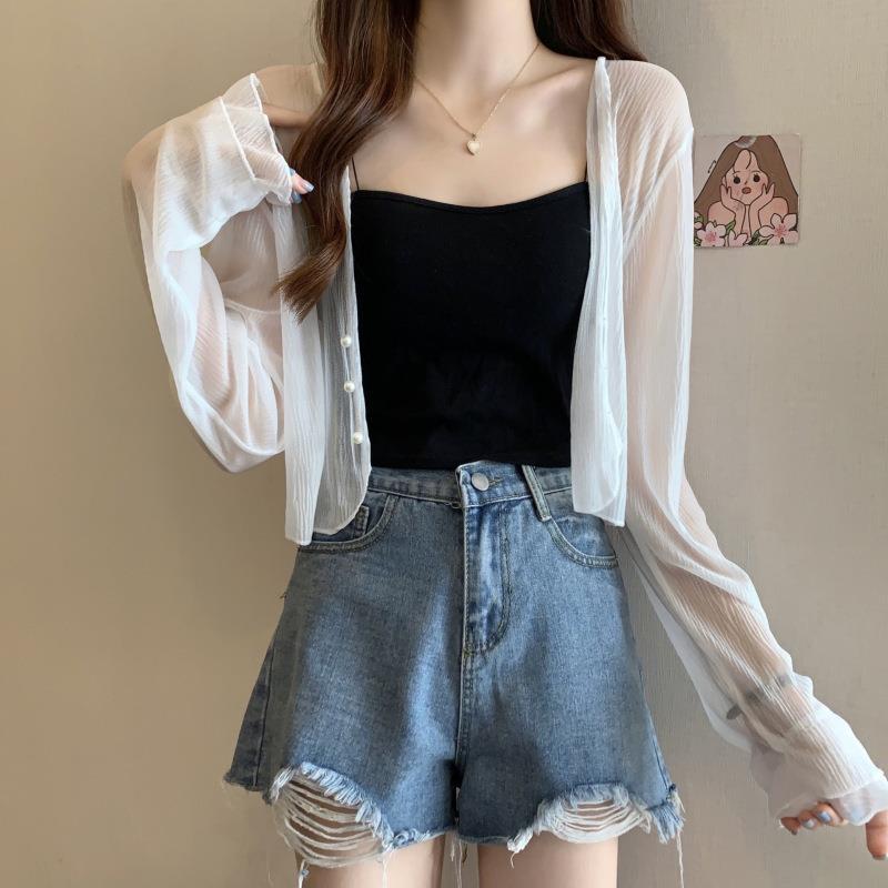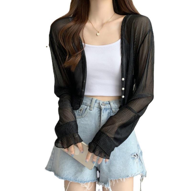 2023夏季防晒长袖冰丝开衫薄款雪纺衫吊带外搭罩衫空调衫披肩上衣