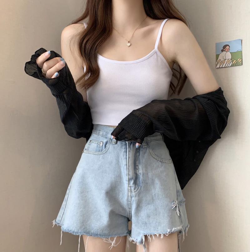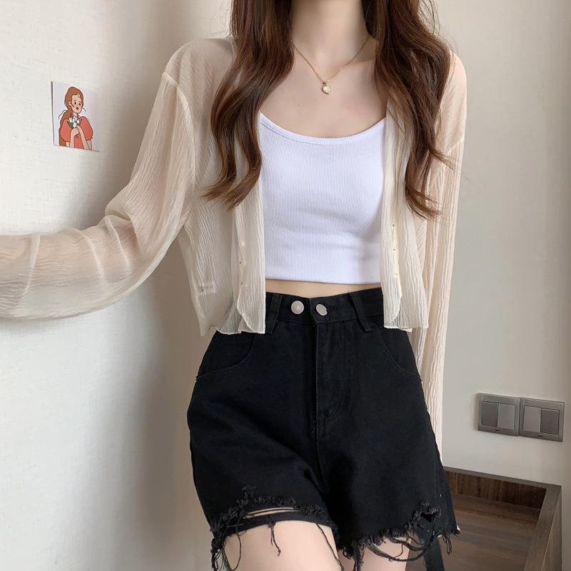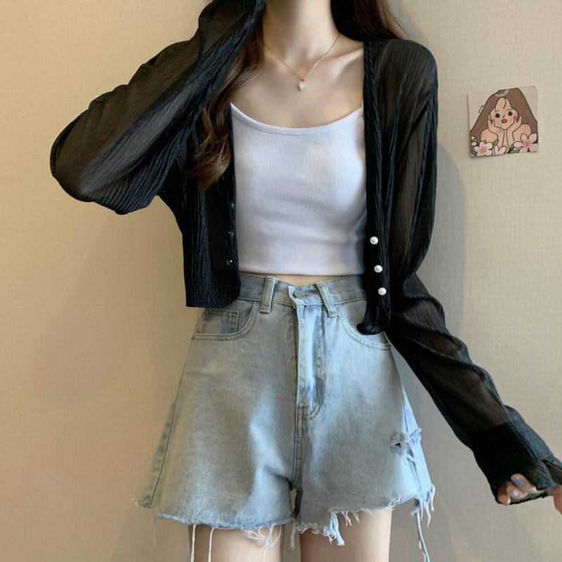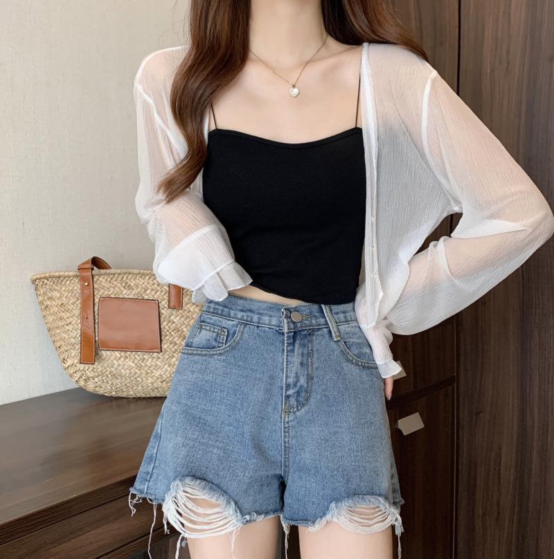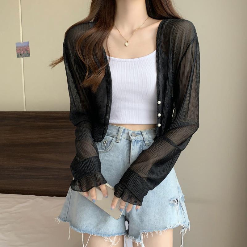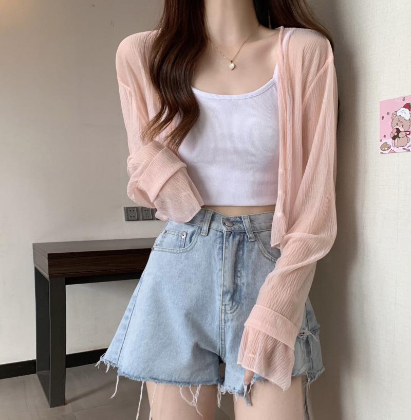 2023夏季防晒长袖冰丝开衫薄款雪纺衫吊带外搭罩衫空调衫披肩上衣