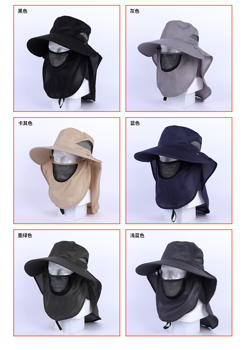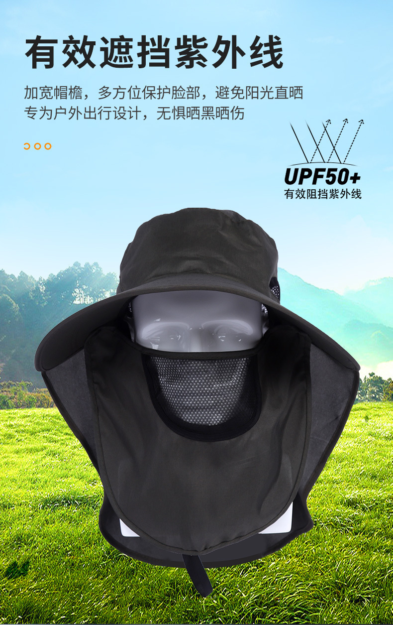 遮阳帽男夏季遮脸防晒太阳帽户外钓鱼帽遮脸披肩帽渔夫帽渔夫帽防