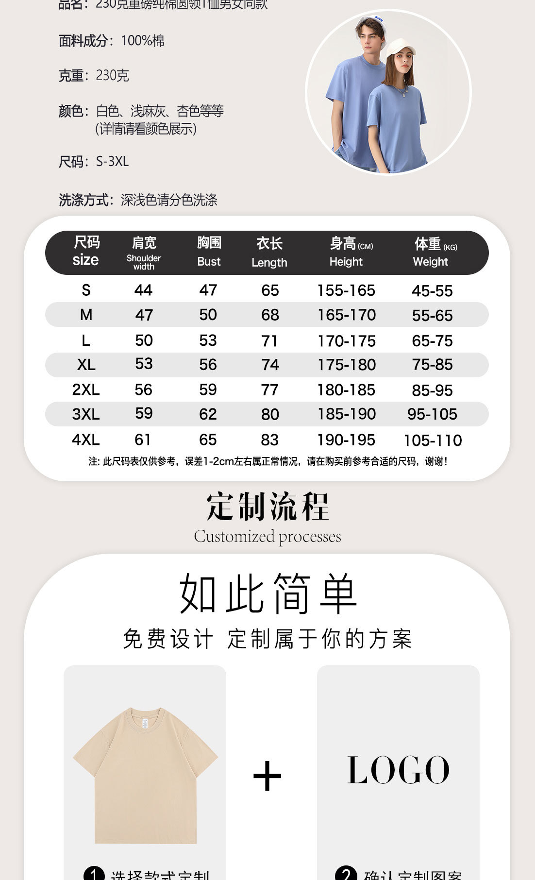 230G欧美纯棉广告衫T恤定制 小批量1件起订24H打样短袖T恤定制
