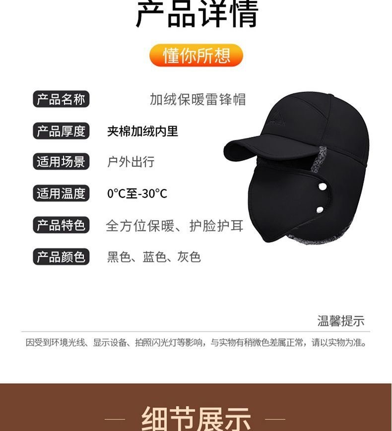 老人帽男冬季保暖加厚老头帽户外防风护耳老年帽防寒抗冷雷锋帽