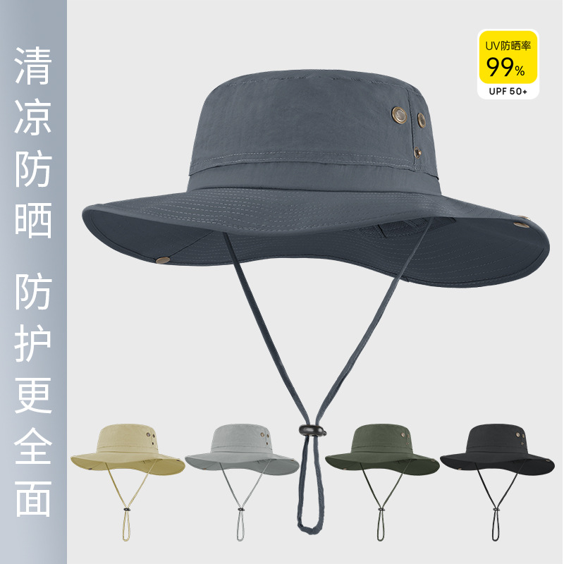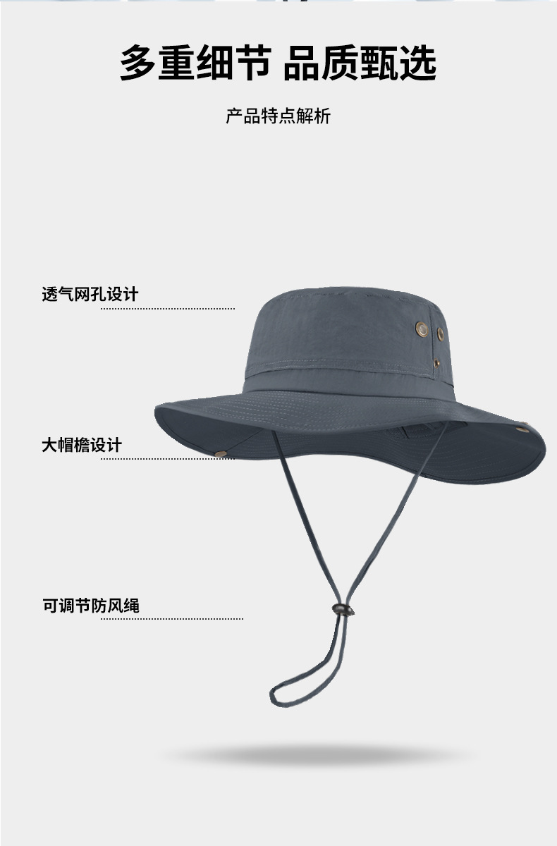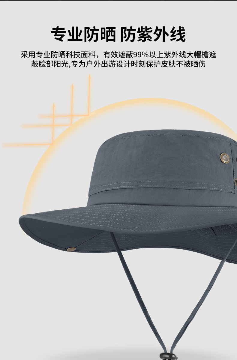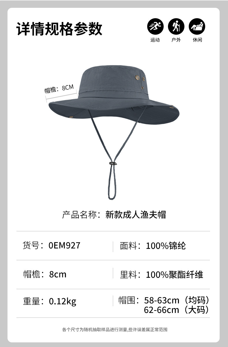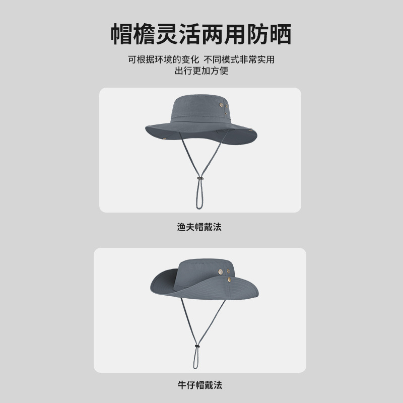 跨境夏季户外渔夫帽男尼龙大帽檐防晒帽透气防紫外线大头围遮阳帽