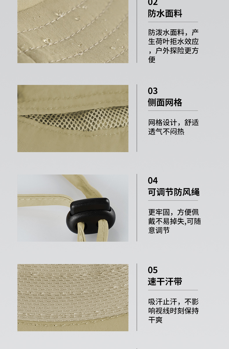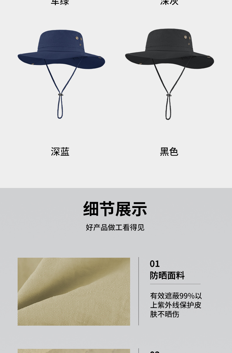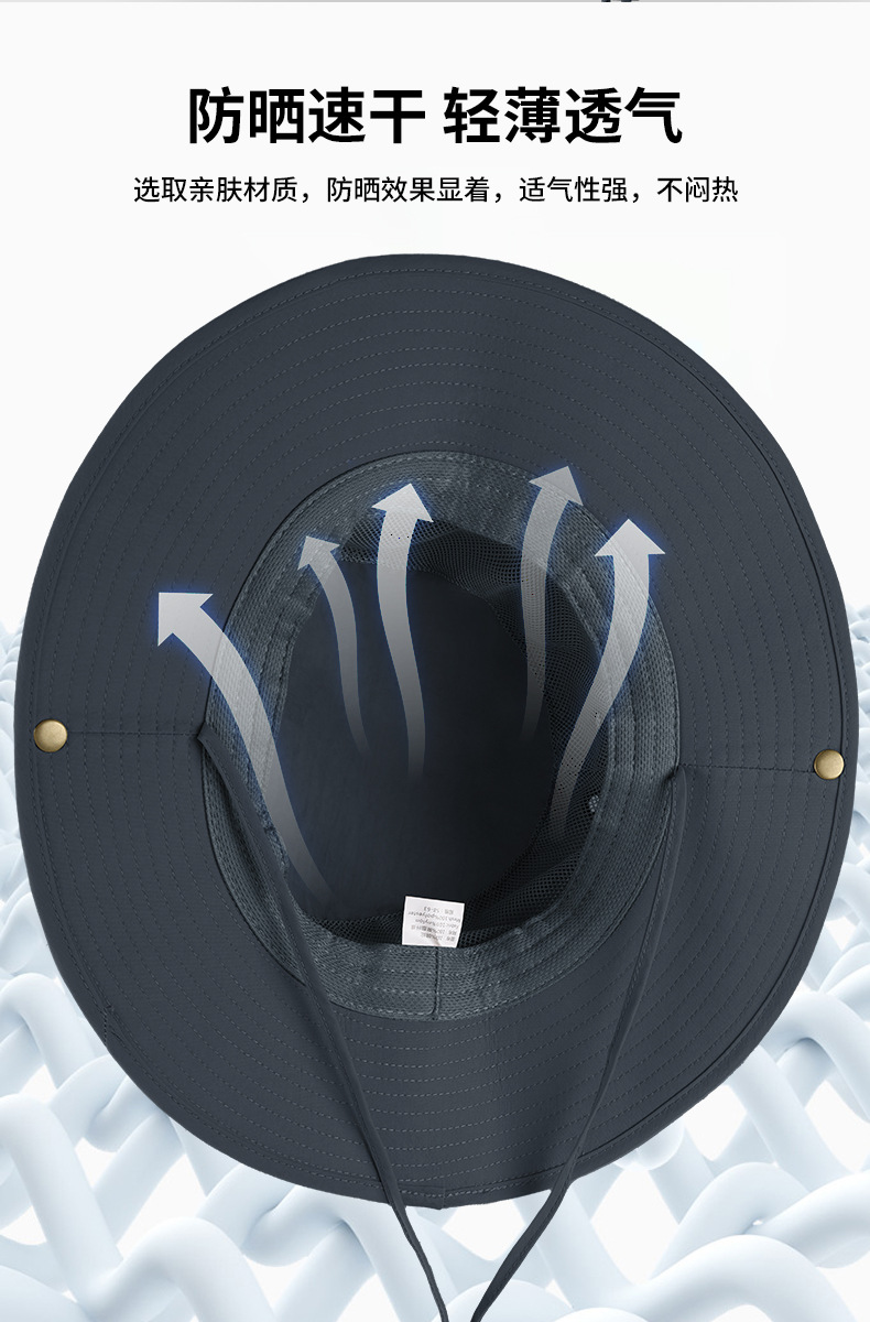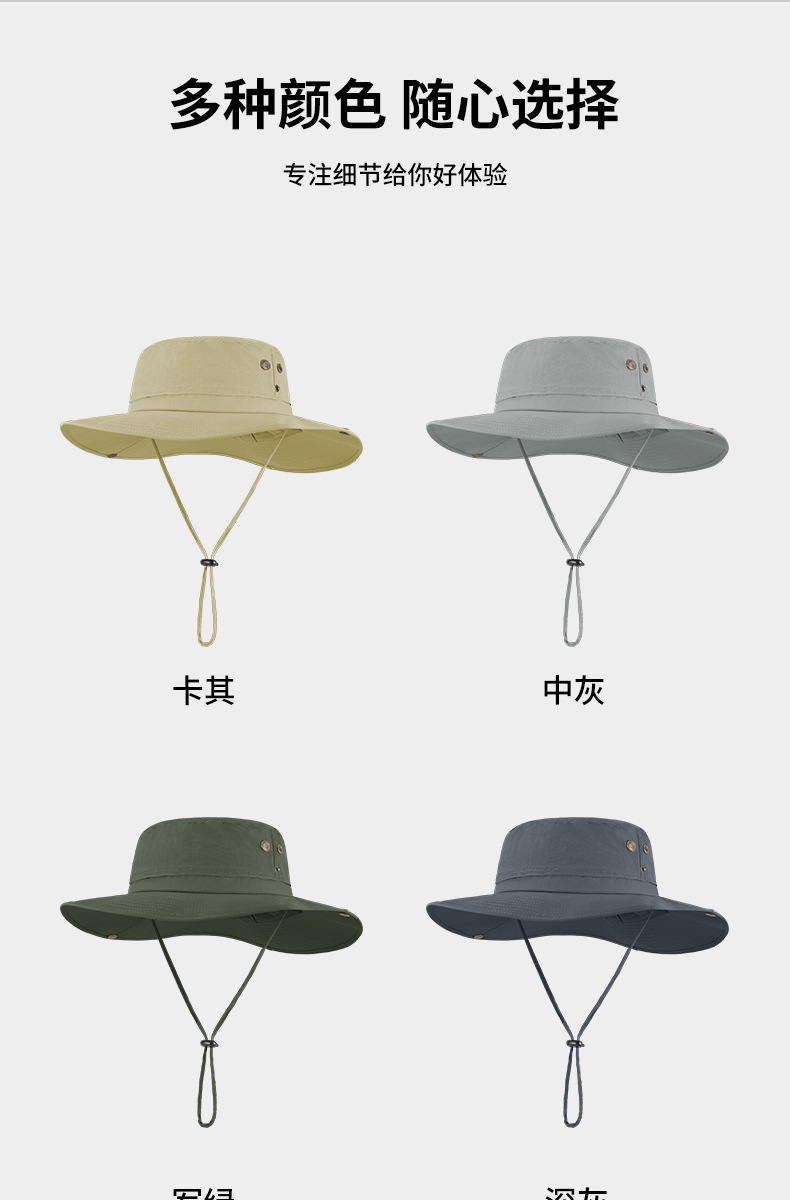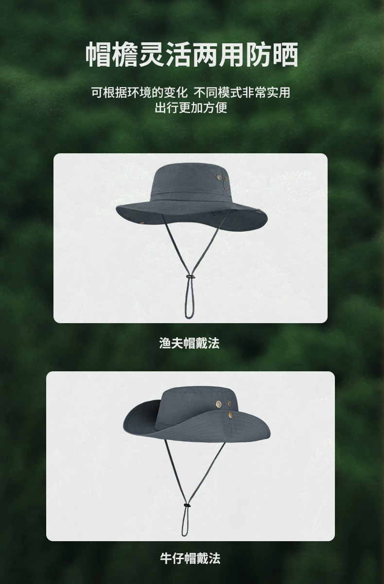 跨境夏季户外渔夫帽男尼龙大帽檐防晒帽透气防紫外线大头围遮阳帽