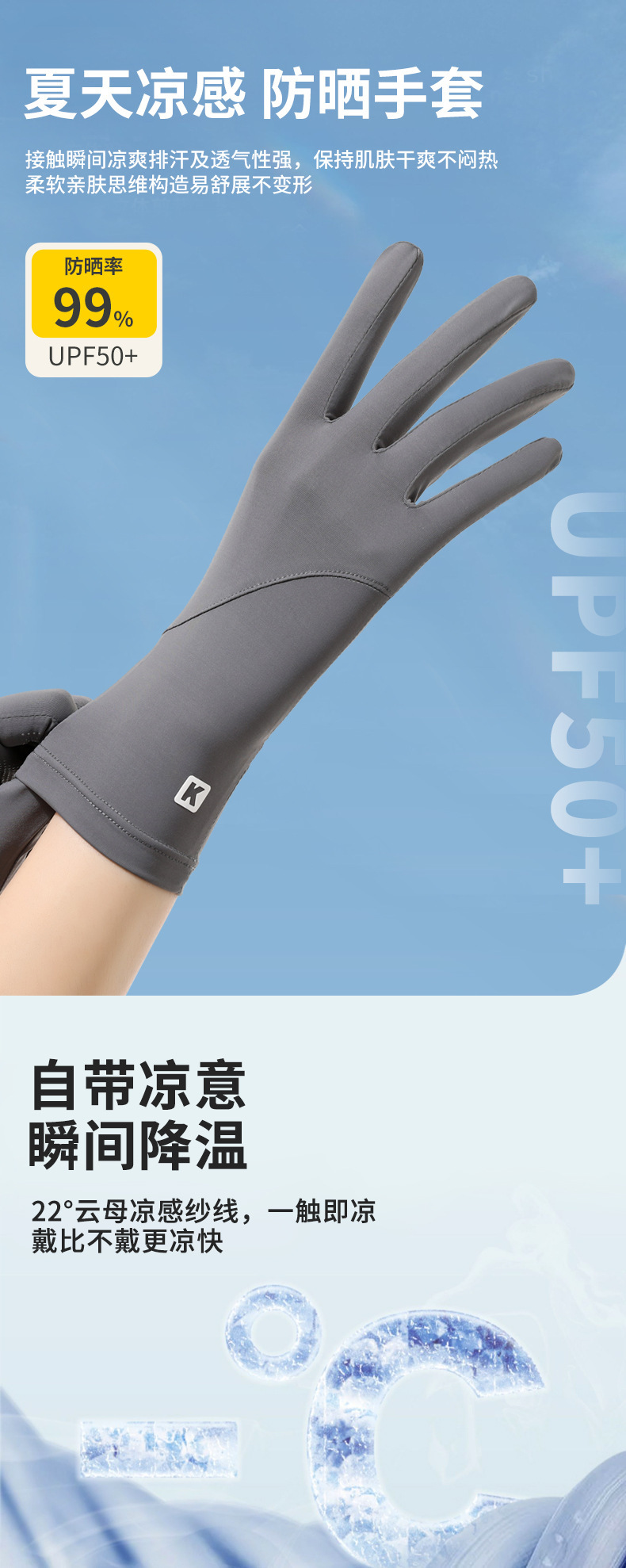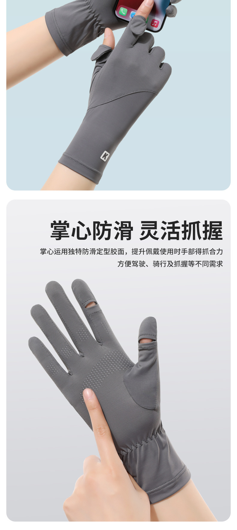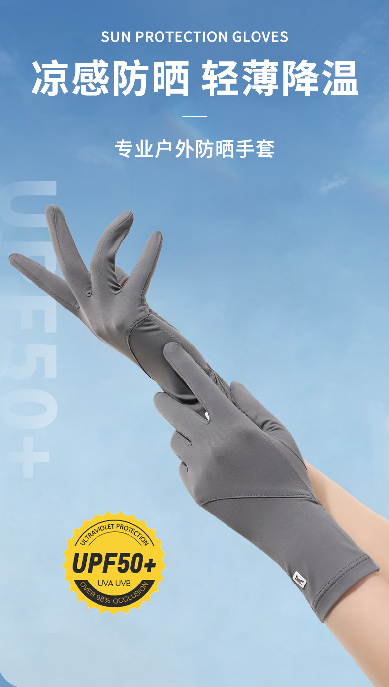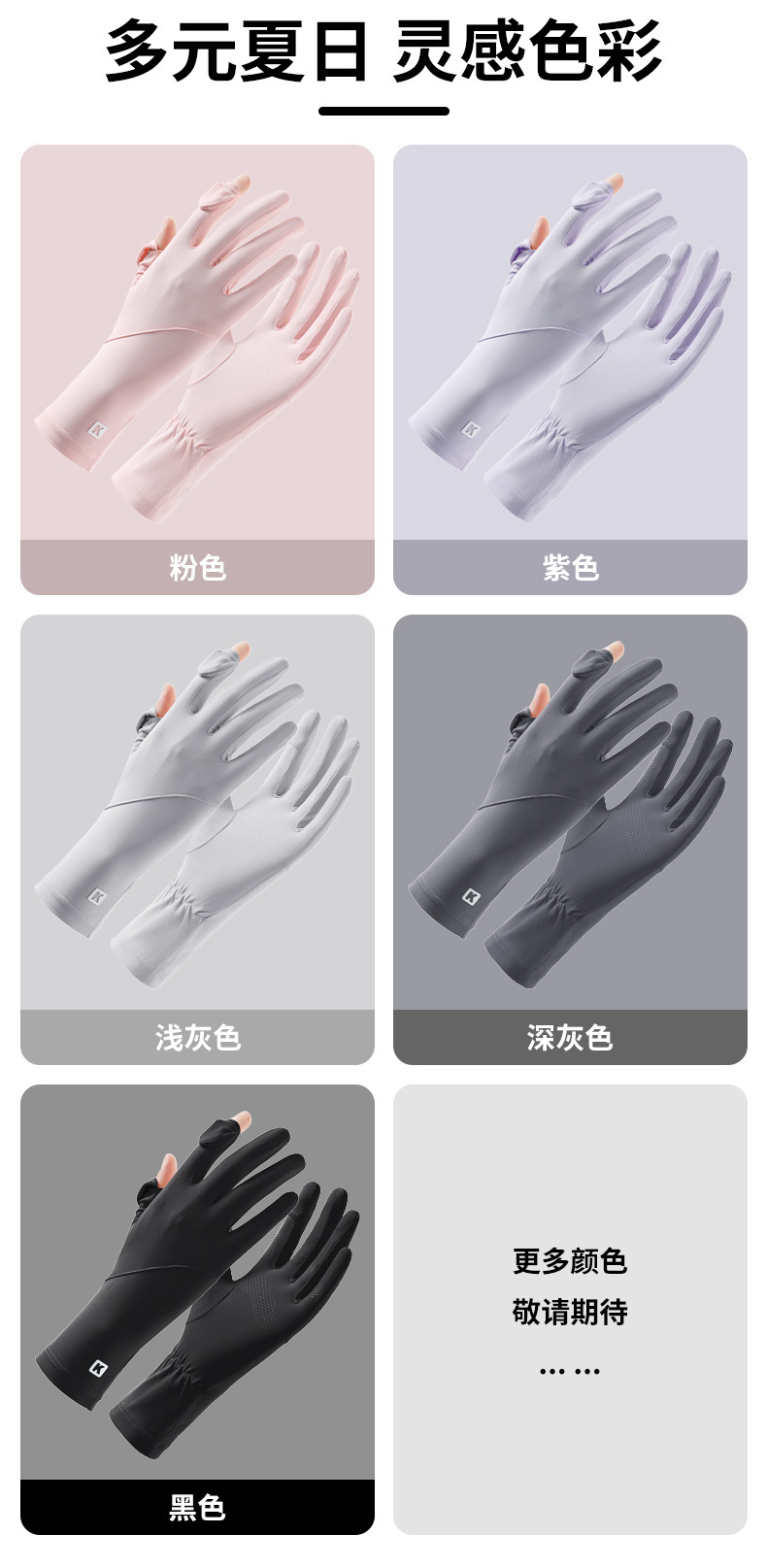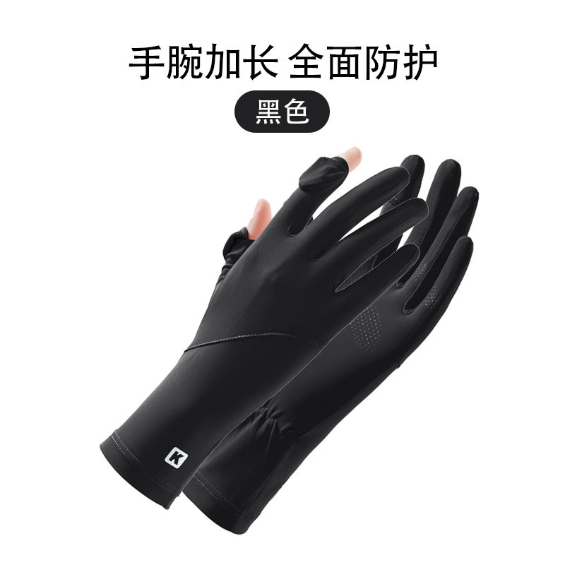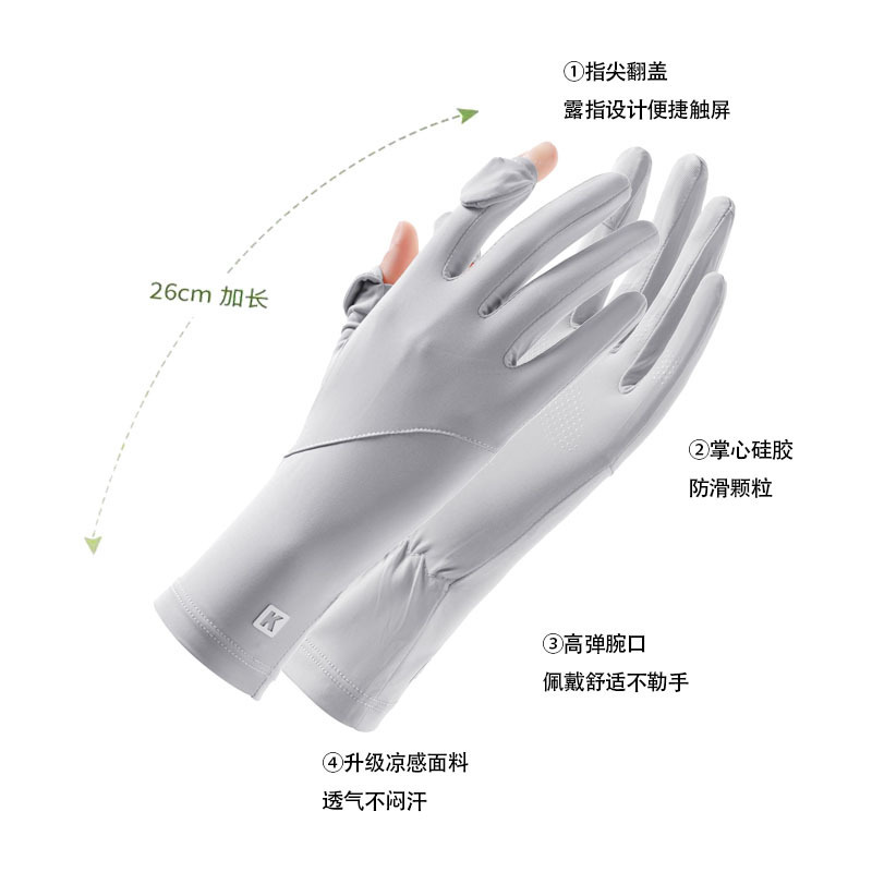 UPF50+防晒手套女防紫外线夏季骑行防滑透气冰丝薄款加长二指翻盖