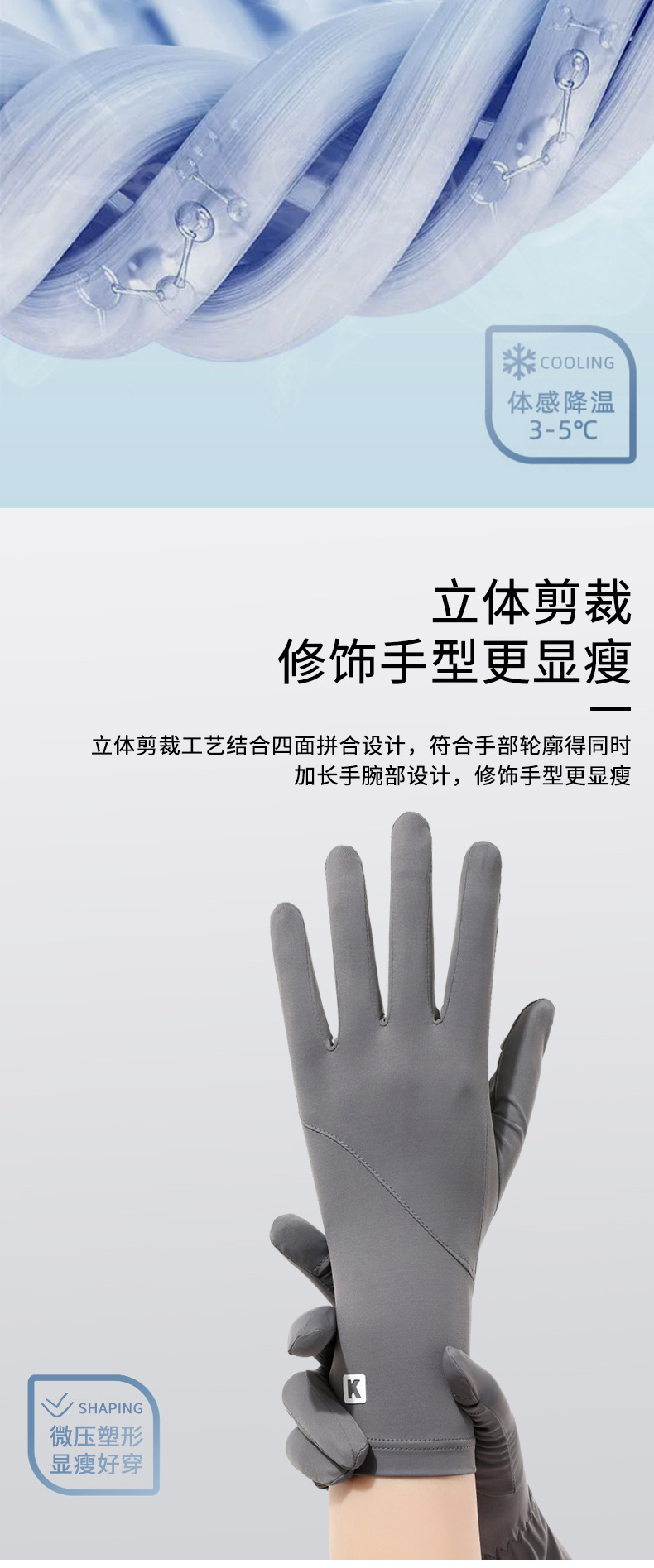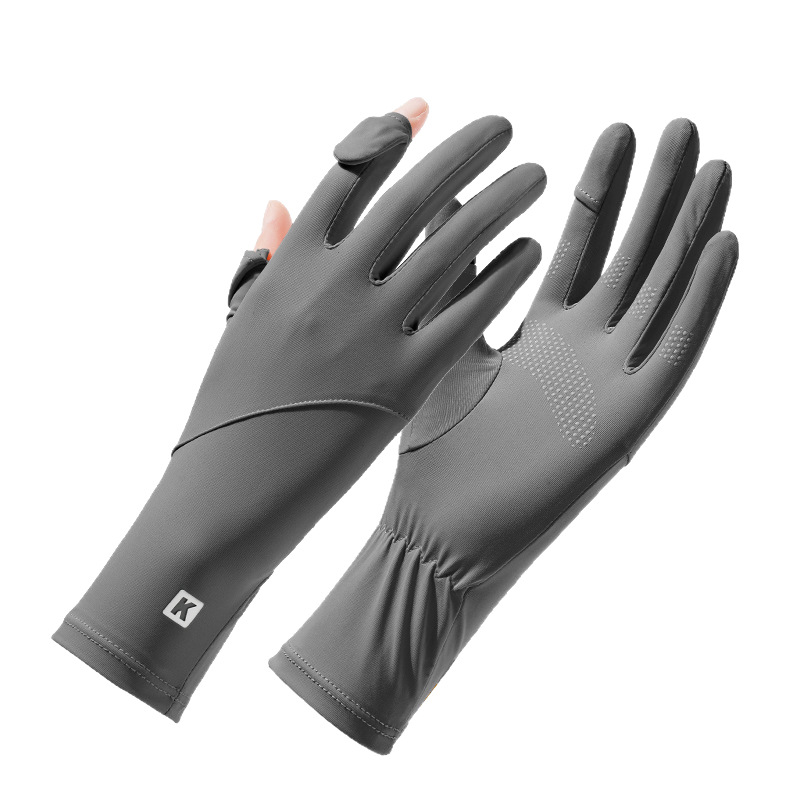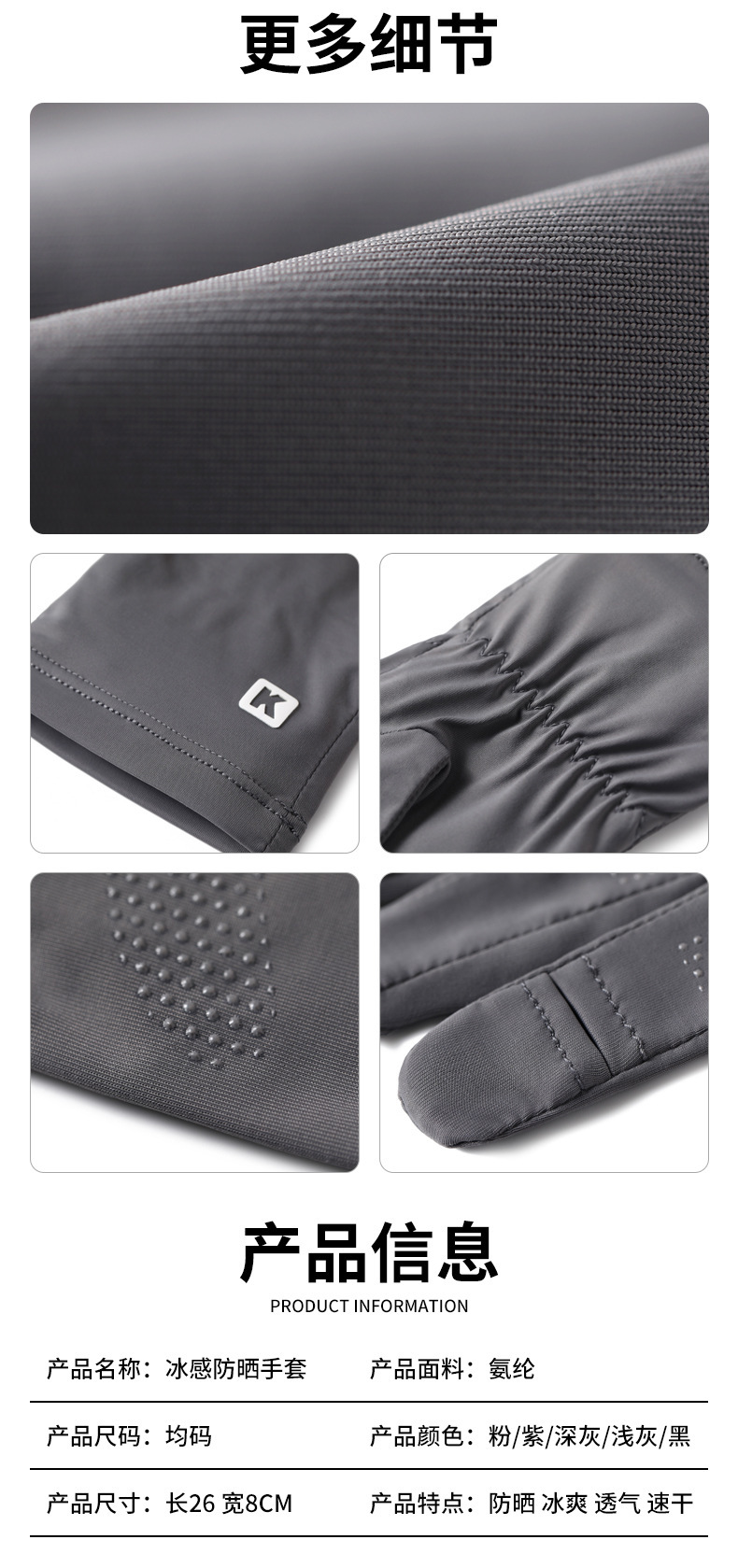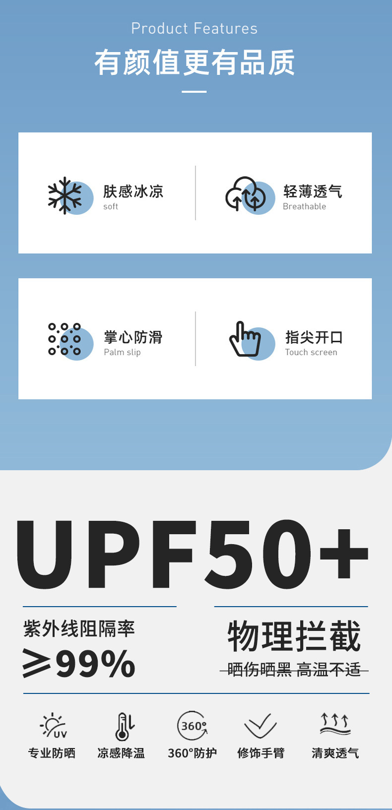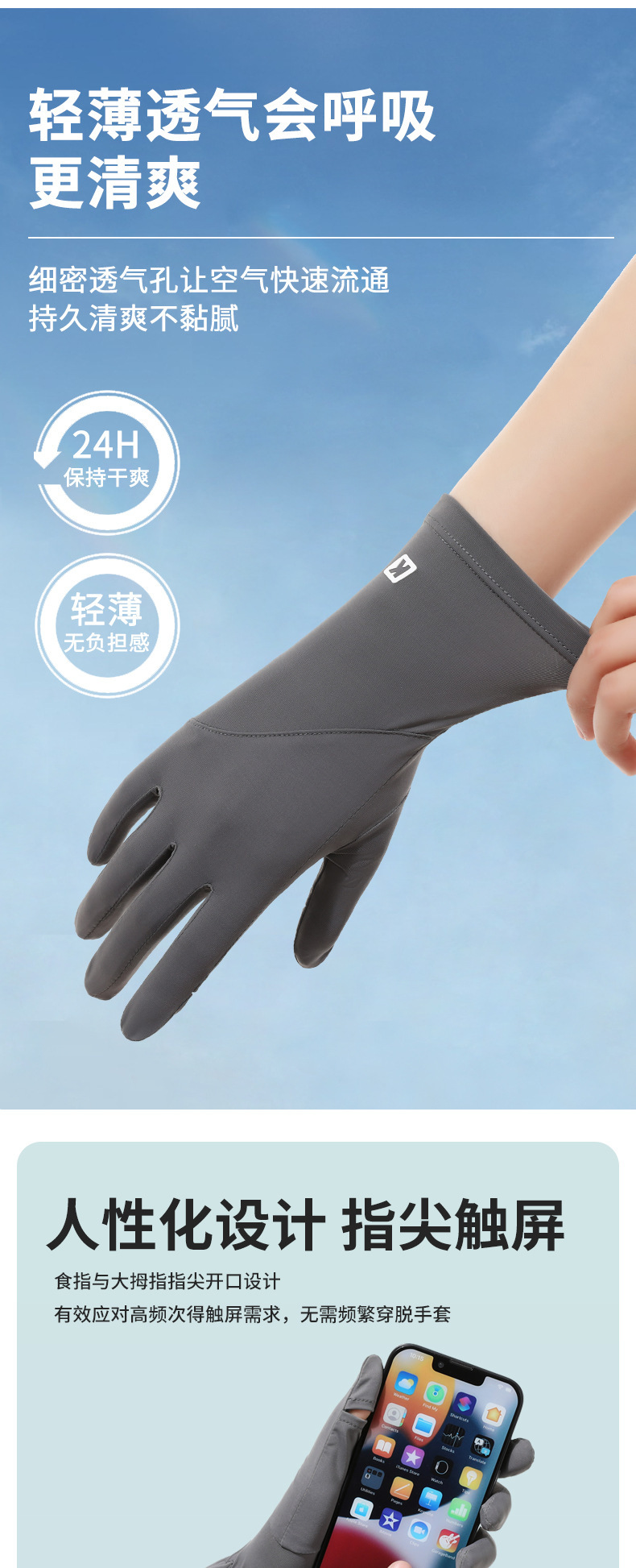 UPF50+防晒手套女防紫外线夏季骑行防滑透气冰丝薄款加长二指翻盖