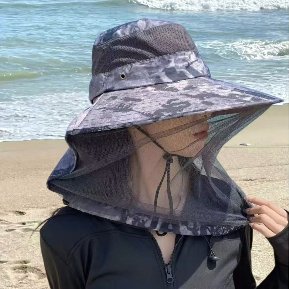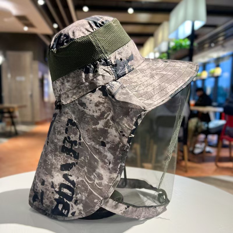 迷彩遮阳帽男夏季防紫外线遮脸登山帽防晒太阳帽子户外骑车钓鱼帽