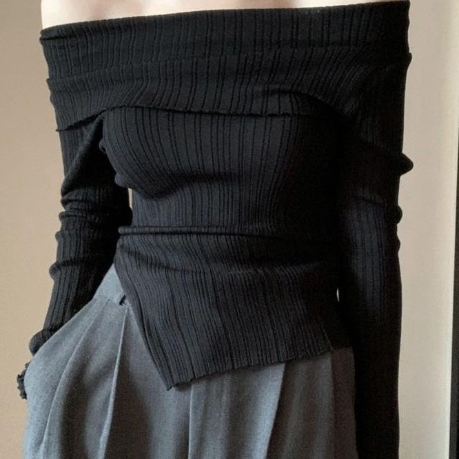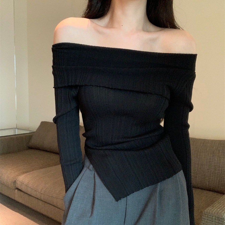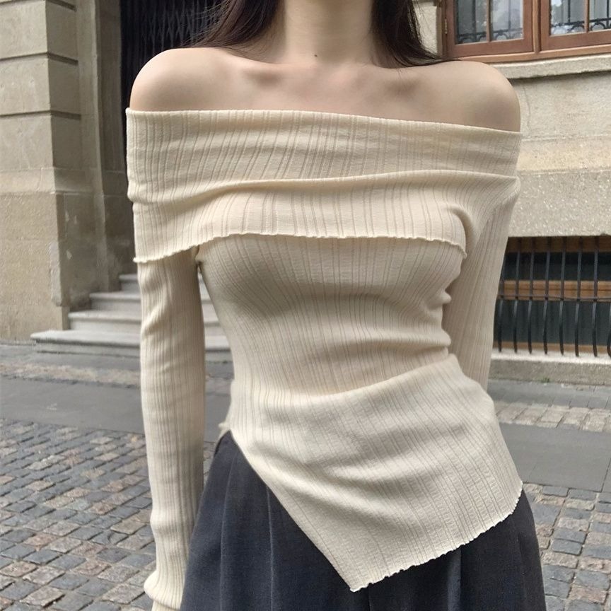 ins性感辣妹一字肩秋冬打底女T恤韩版修身显瘦纯欲打底上衣女 T潮