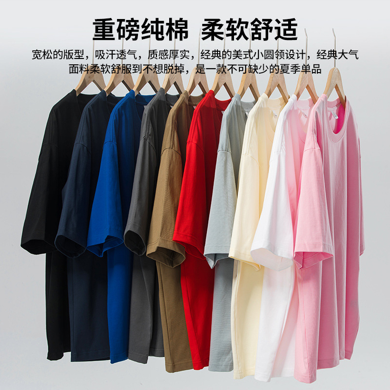 中德BYB26000 32支双纱260g国潮重磅潮牌落肩短袖T恤现货印图印字