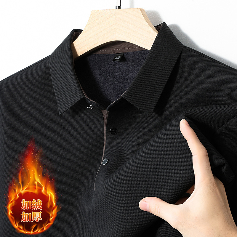 秋冬新款加绒长袖T恤男士休闲翻领T恤时尚百搭加厚中青年打底衫