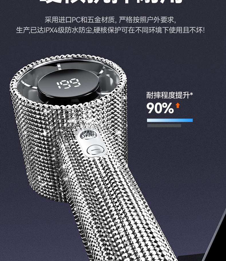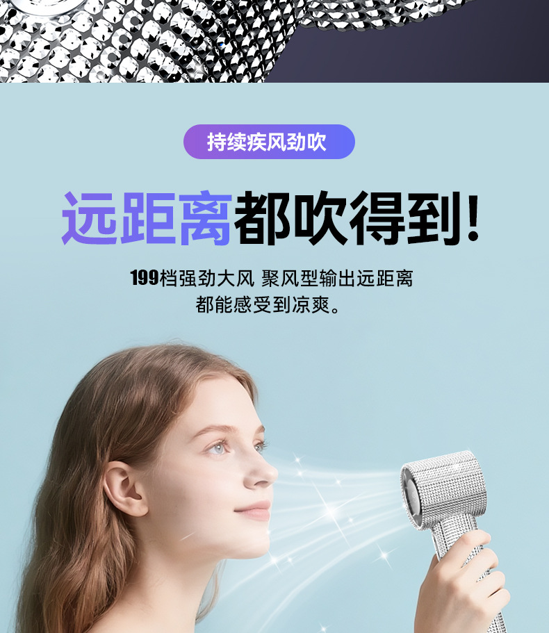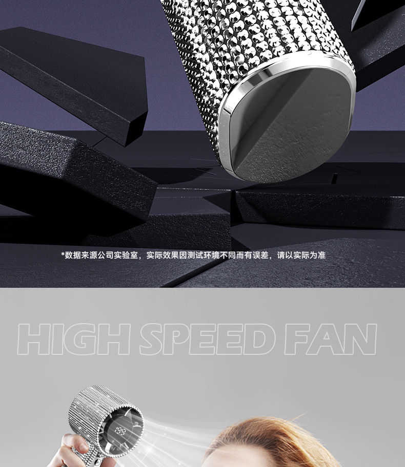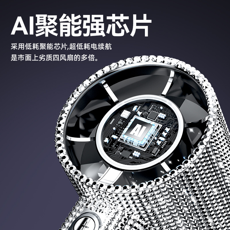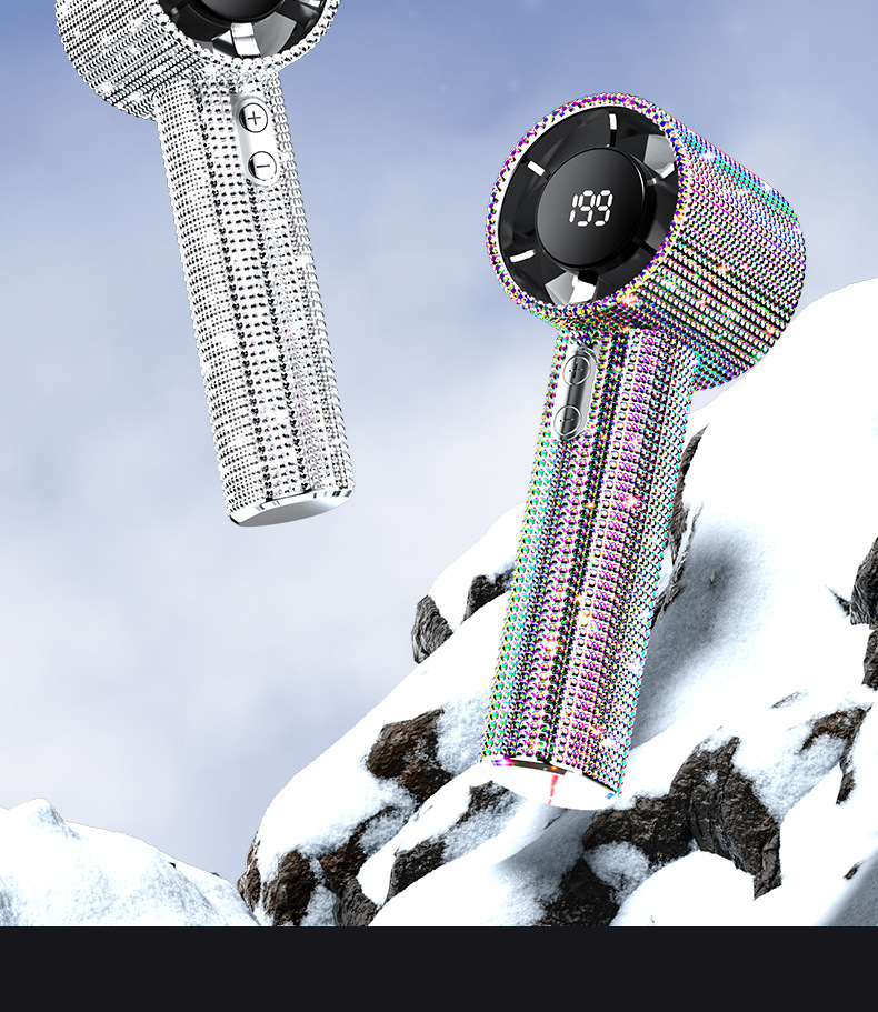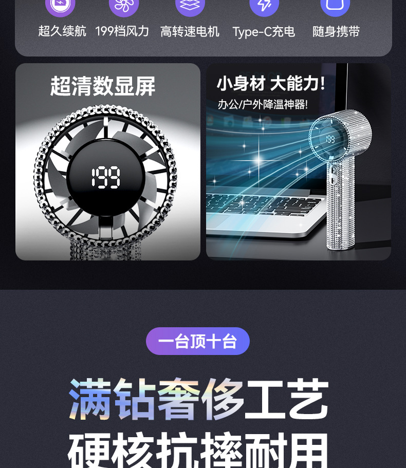 跨境199档手持暴力涡轮全包镶钻小风扇USB高速数显便携长续航风扇