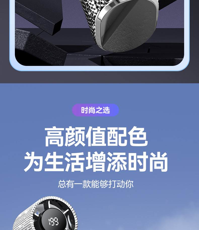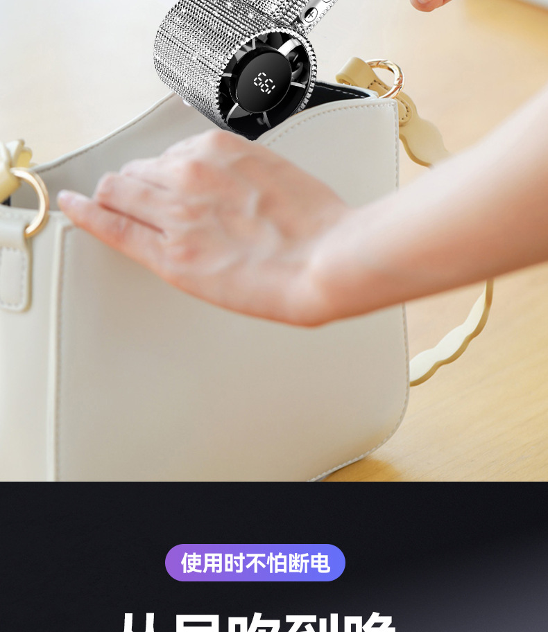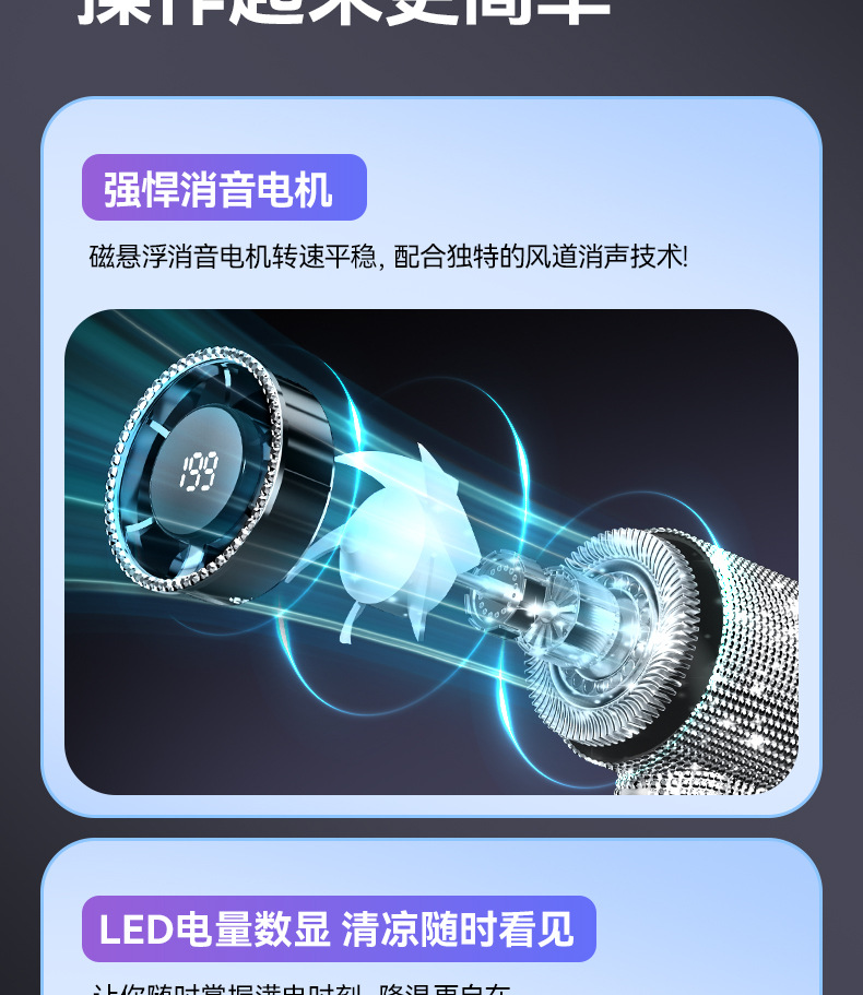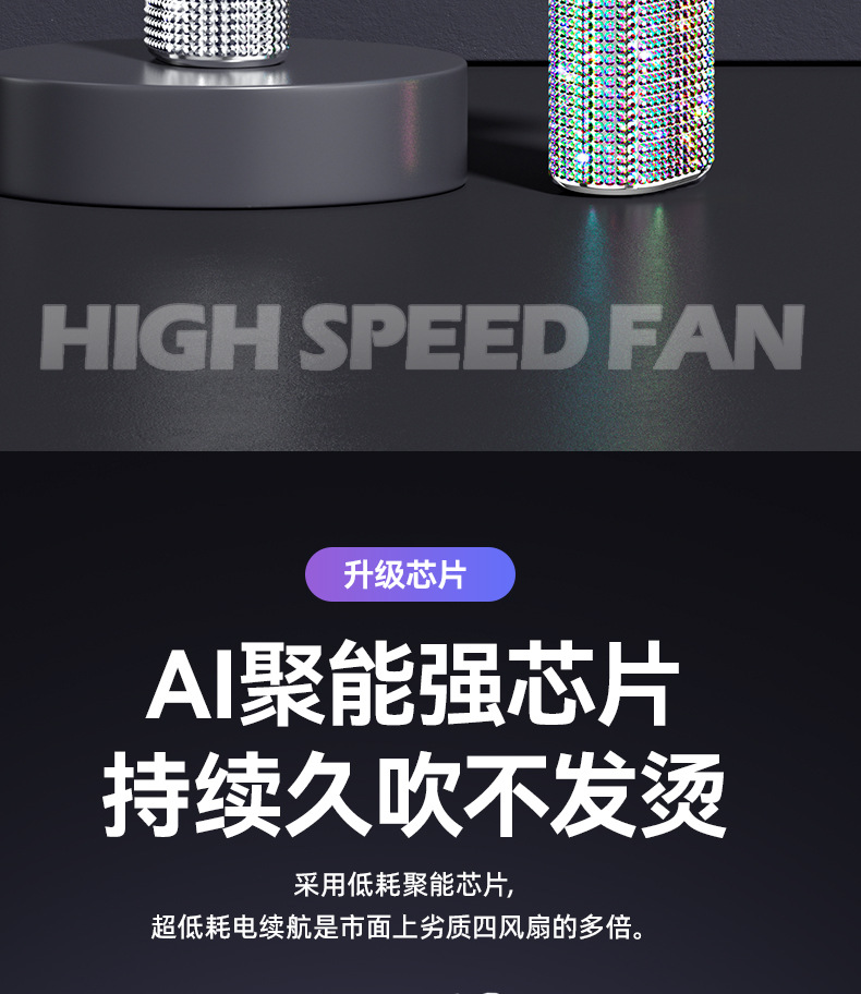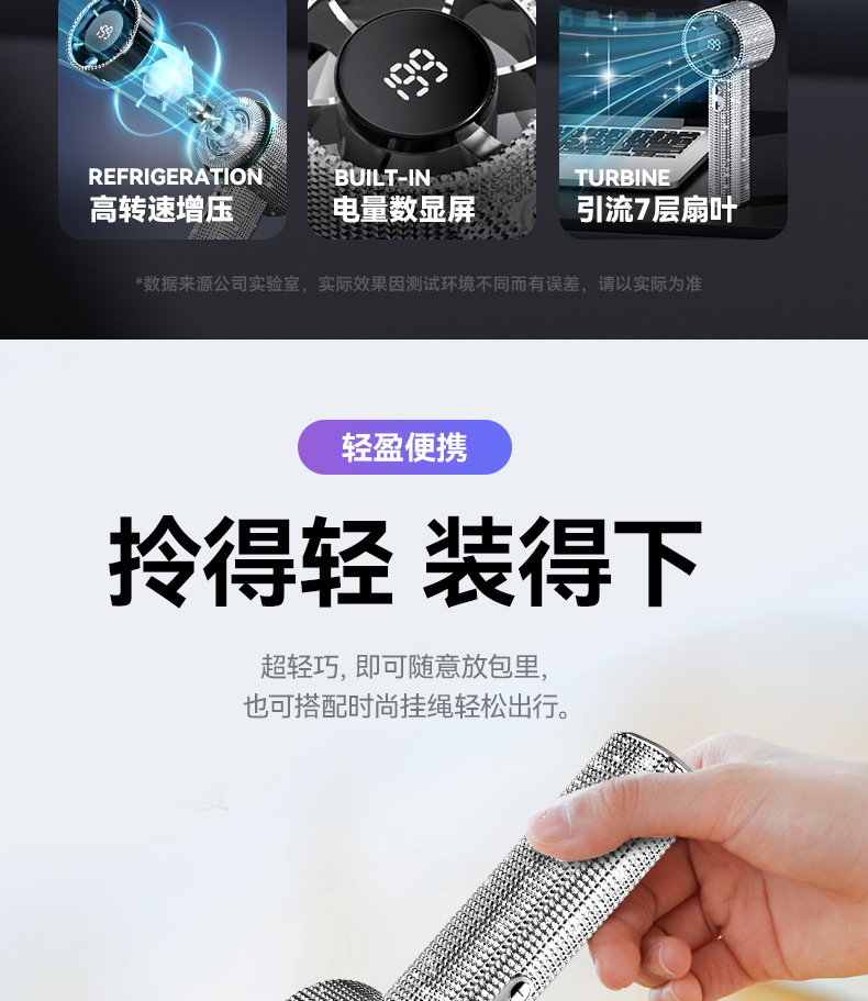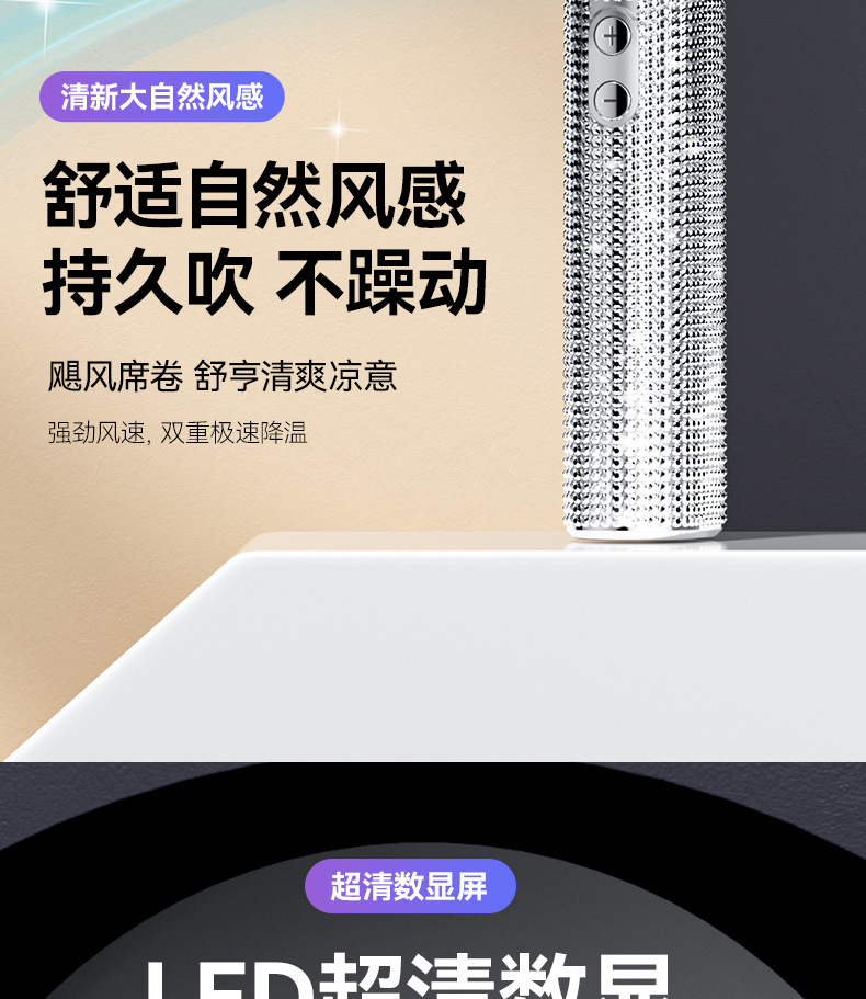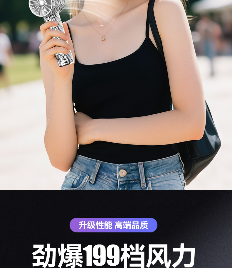 跨境199档手持暴力涡轮全包镶钻小风扇USB高速数显便携长续航风扇