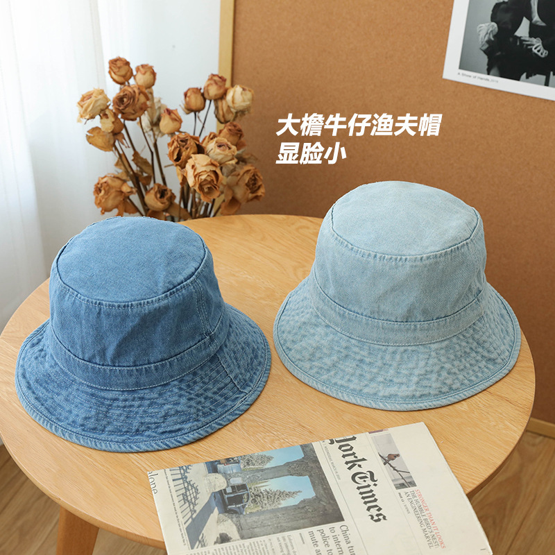 日系牛仔渔夫帽男大檐显脸小女生素颜遮脸盆帽韩版百搭情侣帽子潮