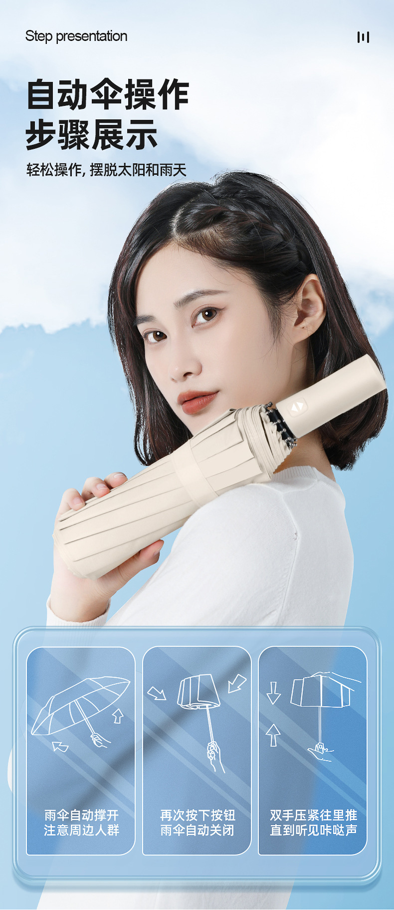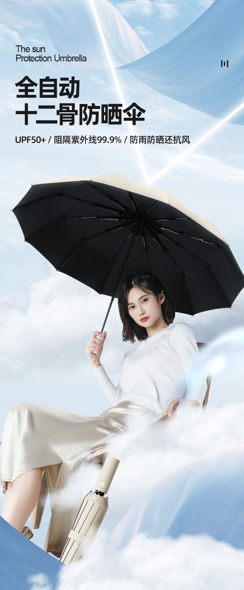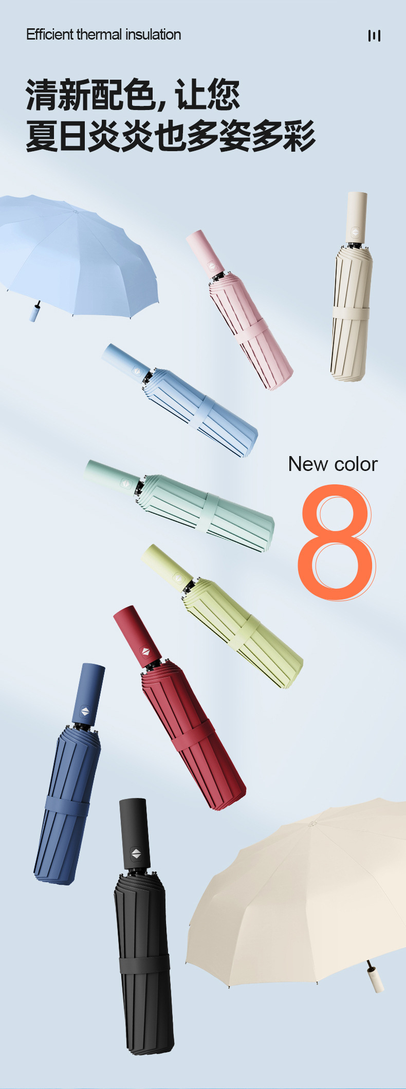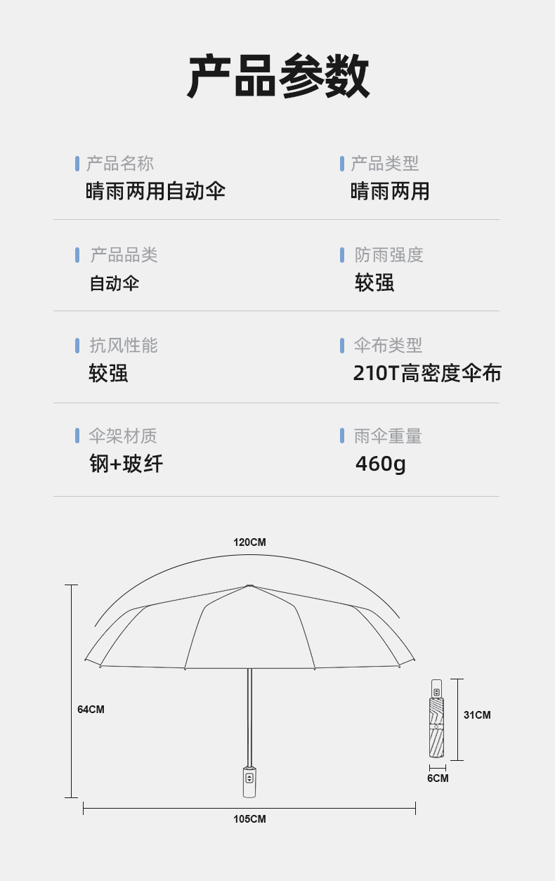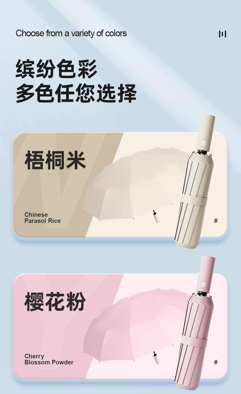 全自动雨伞十二骨双骨加大加固伞三折黑胶防紫外线遮阳伞晴雨两用