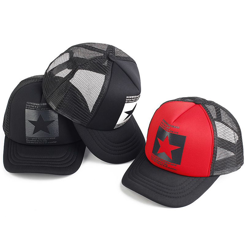 春夏季男女五角星网帽黑白多色情侣棒球帽太阳遮阳帽嘻哈镂空帽子