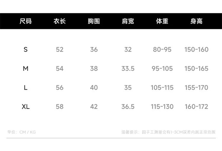 | S(80-95斤) | USD $0.0 | 40 piece available |