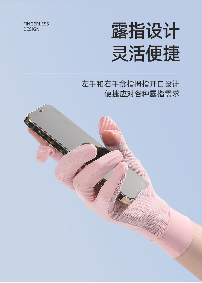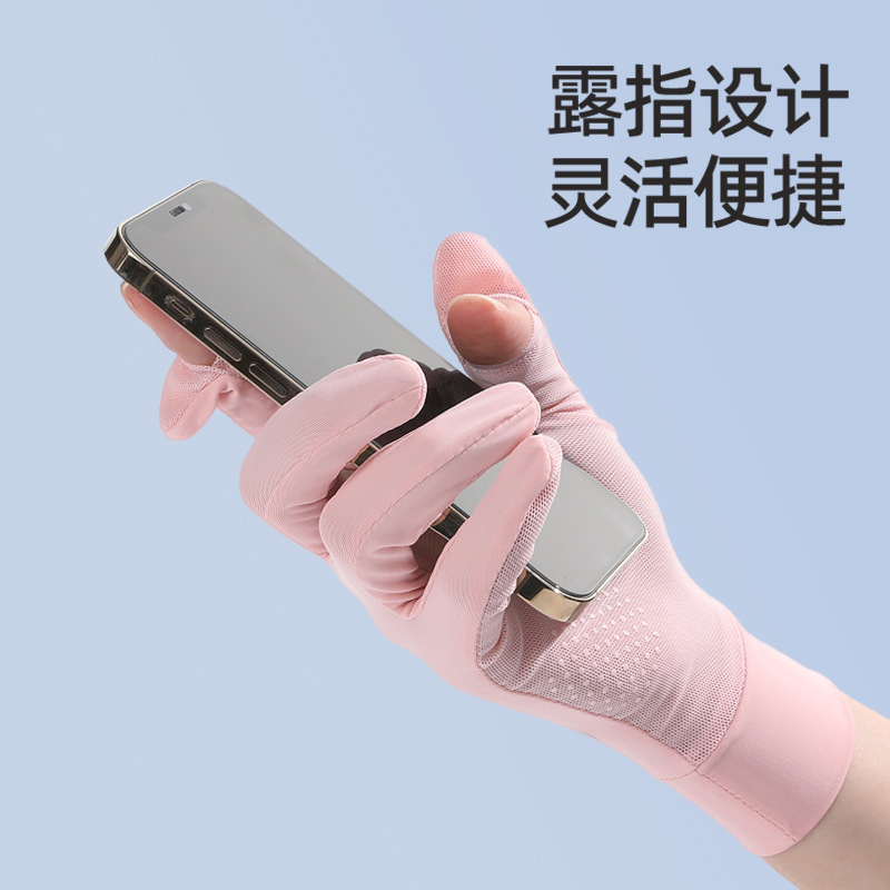 夏季防晒手套女骑行触屏开车防滑户外漏二指翻盖防紫外线手套M标