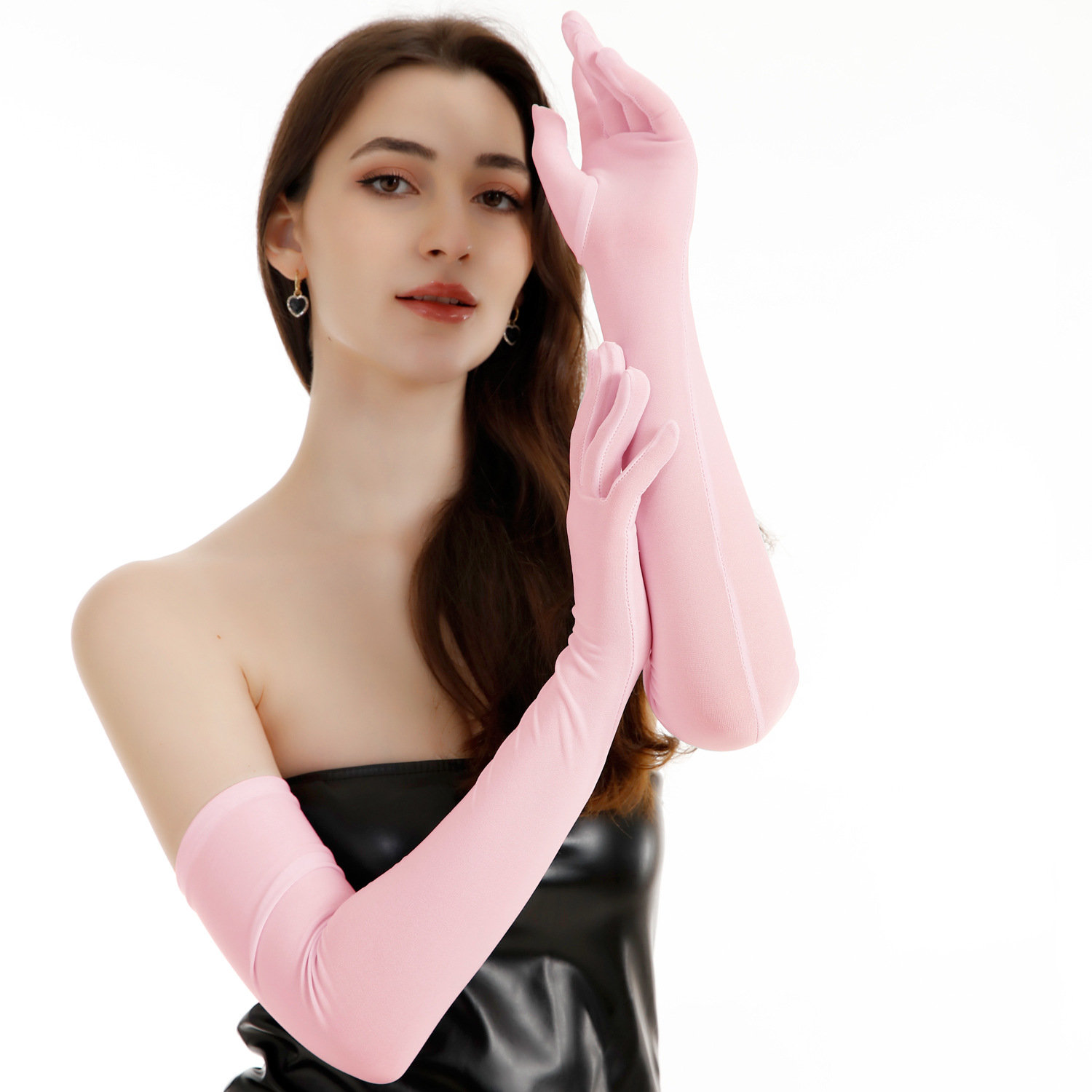 女士加长弹力牛奶丝手套夏季防晒薄款舞蹈表演婚纱手套57厘米过肘