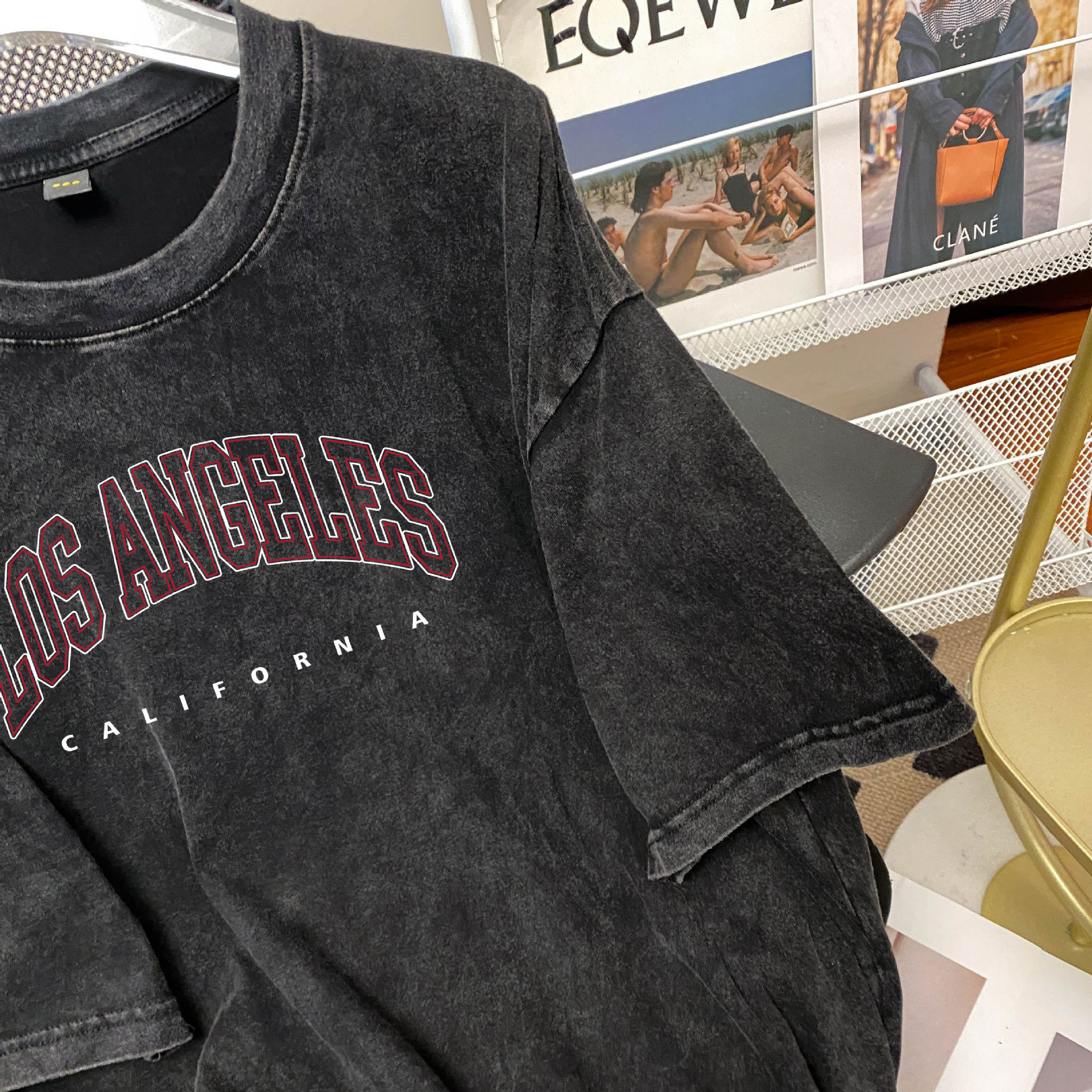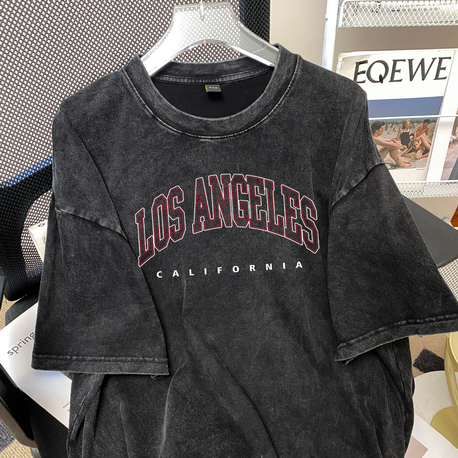 流行上衣纯棉水洗字母瘦感百搭显瘦欧美做印花韩版T恤旧