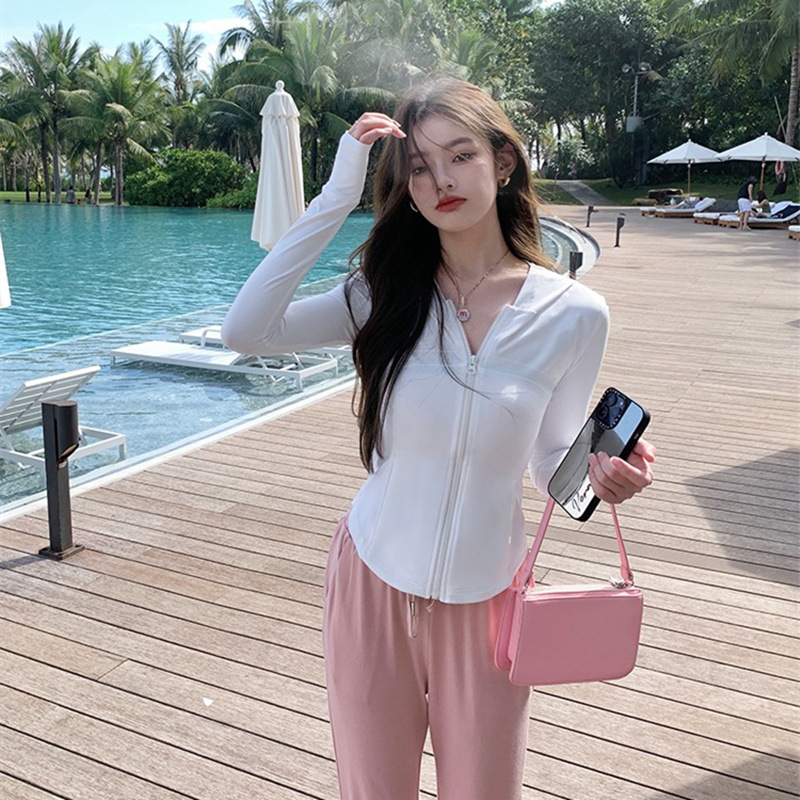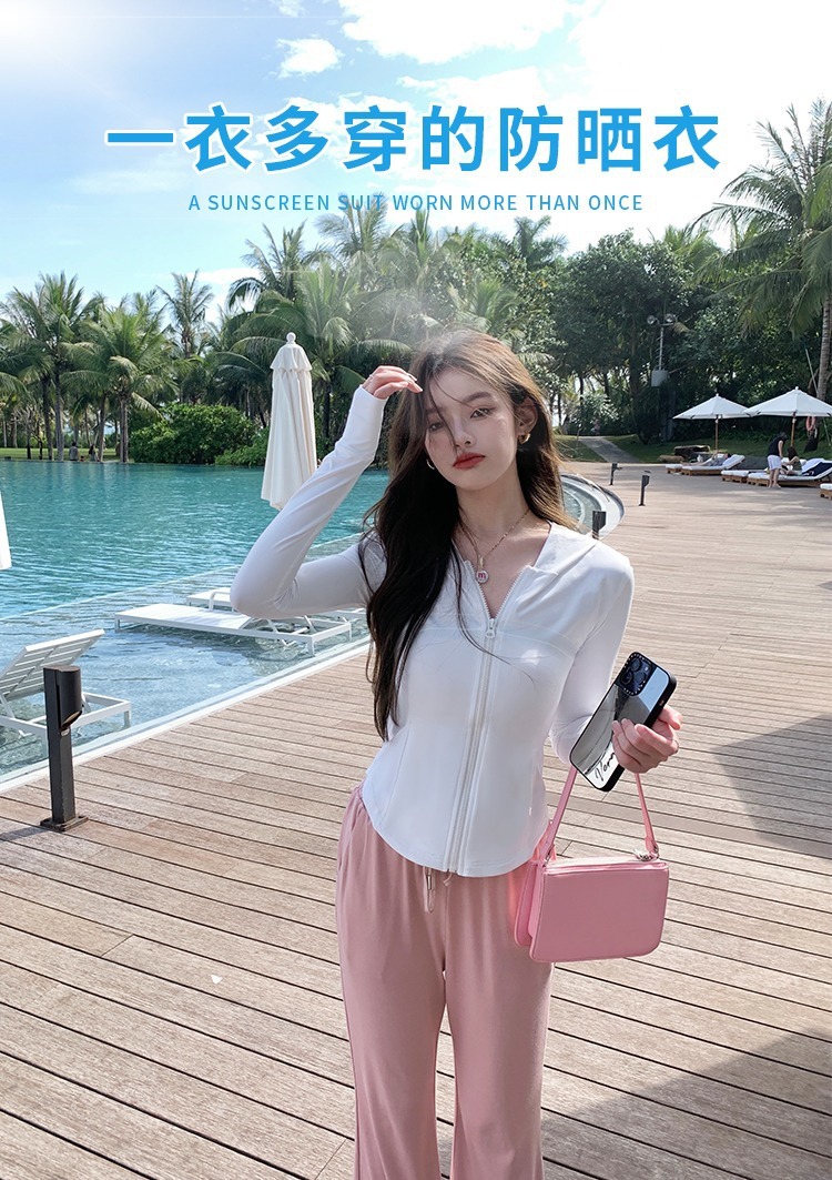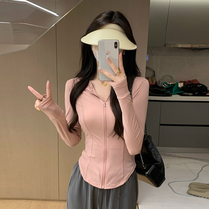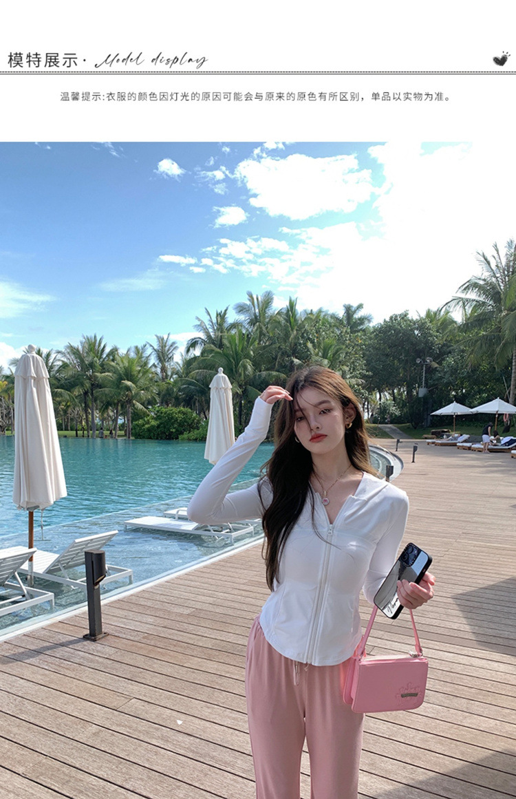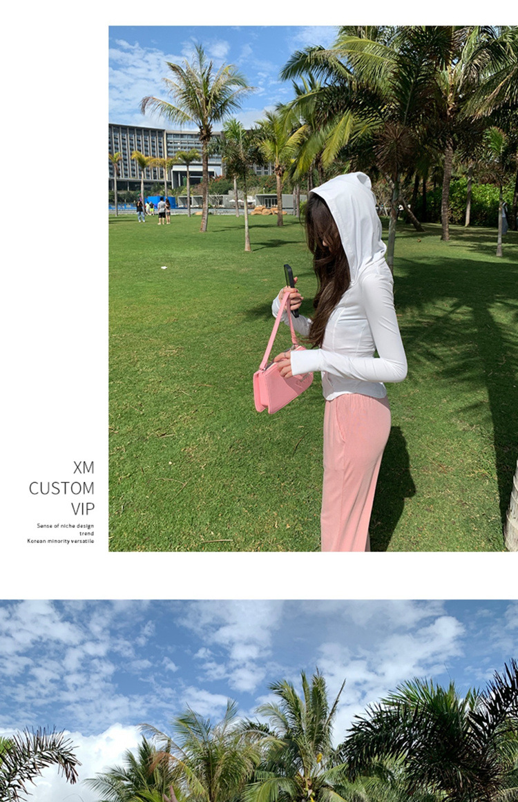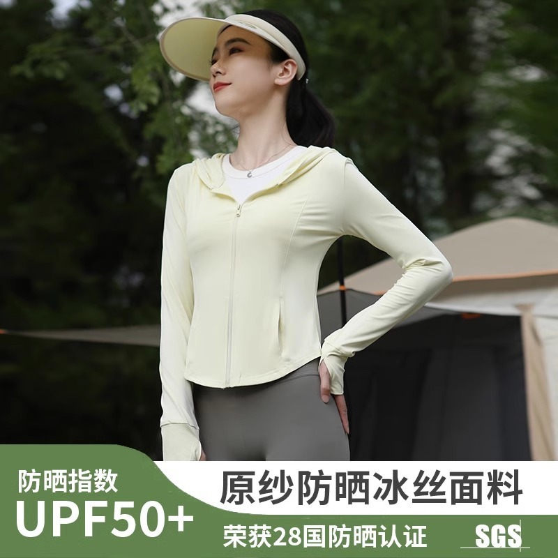 冰丝衣女夏薄款透气防紫外线修身短款连帽上衣开衫UPF50+跨境工厂