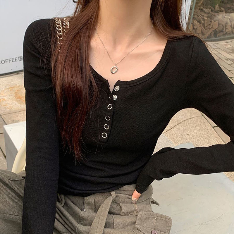 打底衫女内搭春秋2025新款灰色修身白色长袖t恤秋季黑色修身上衣
