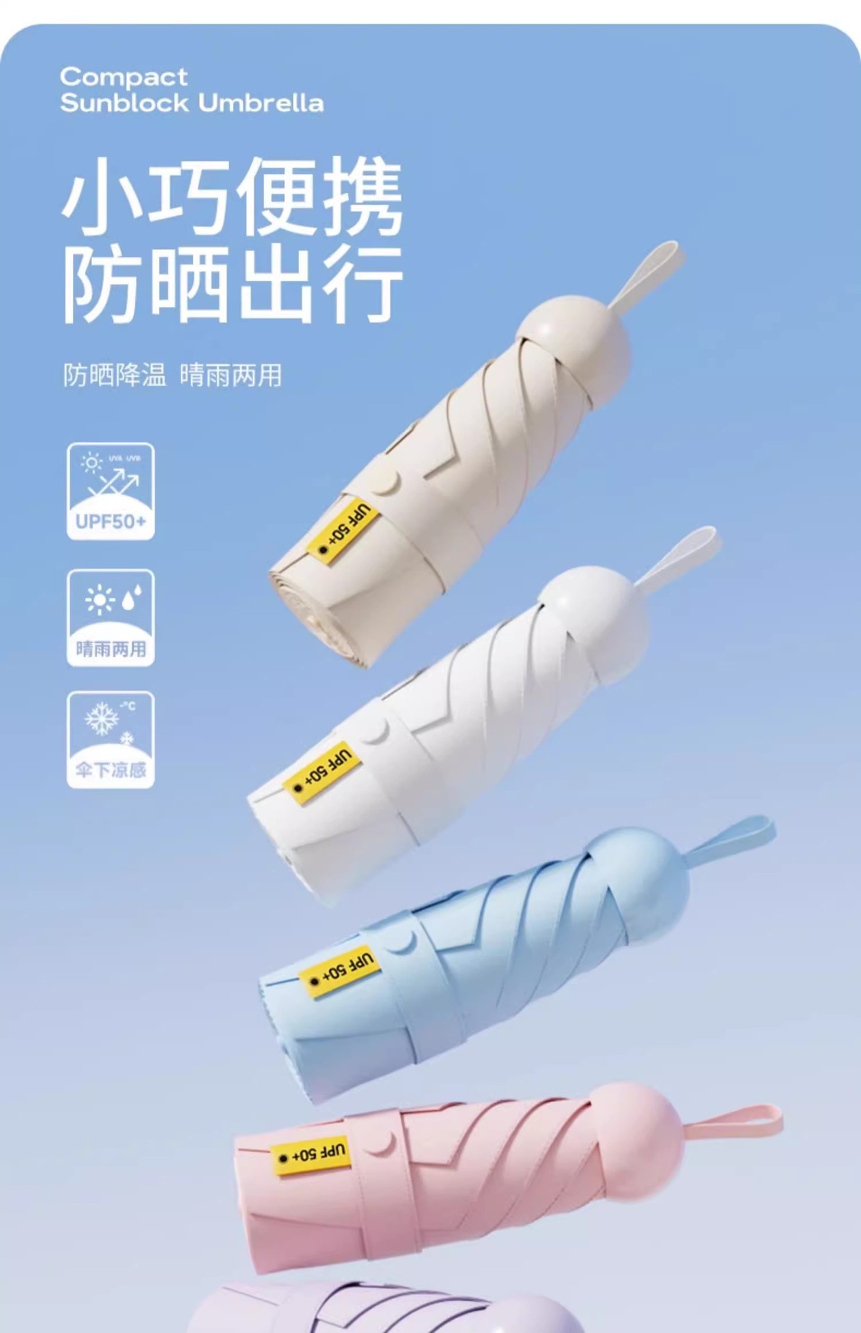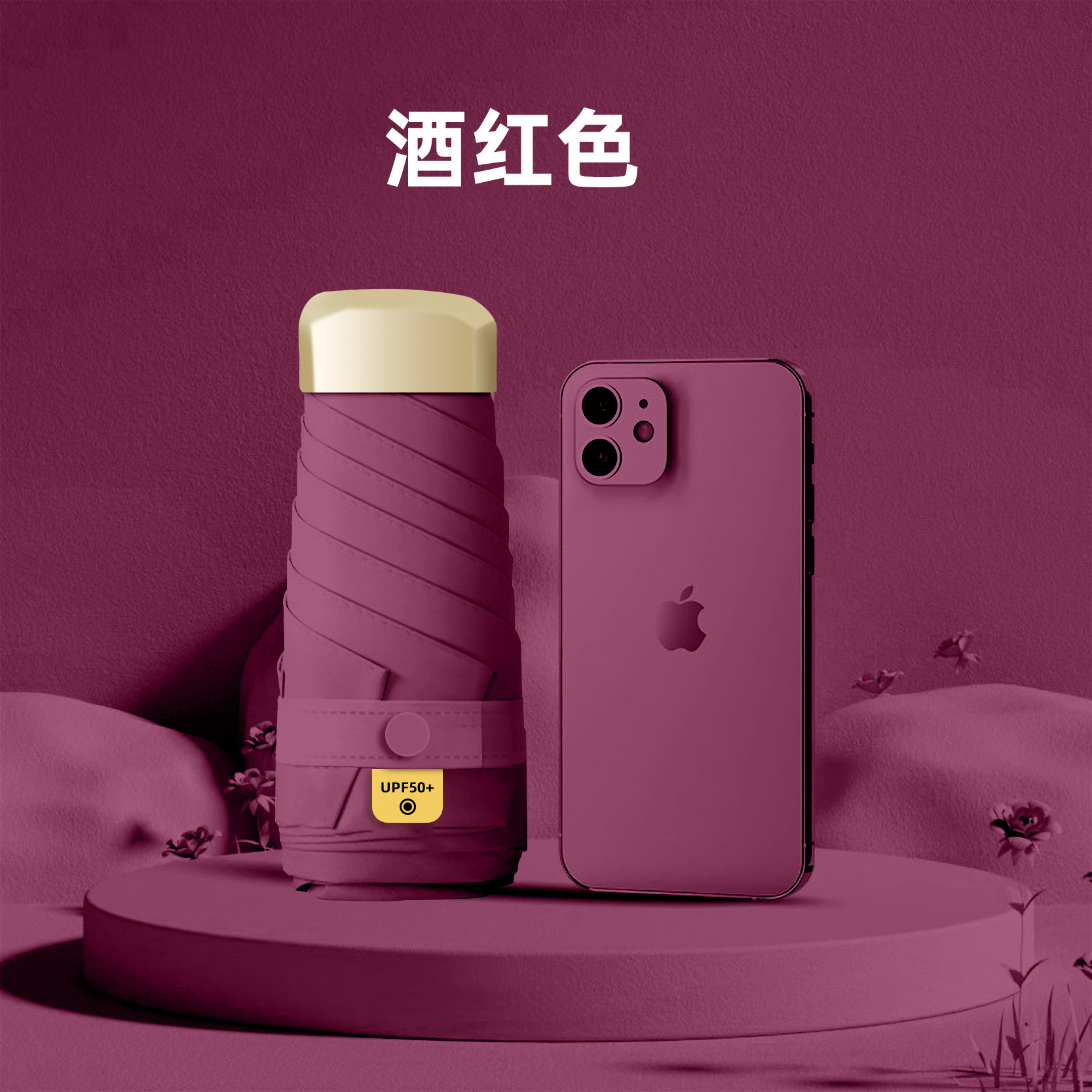 超轻五折胶囊伞小巧便携遮阳伞礼品折叠晴雨伞印字黑胶防晒口袋伞