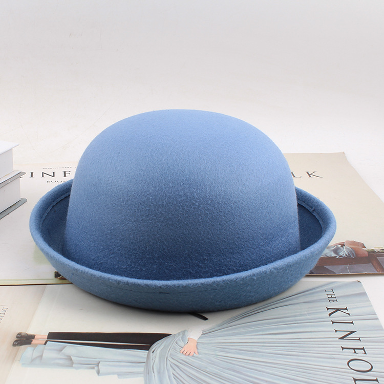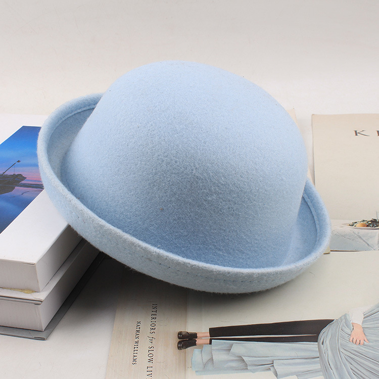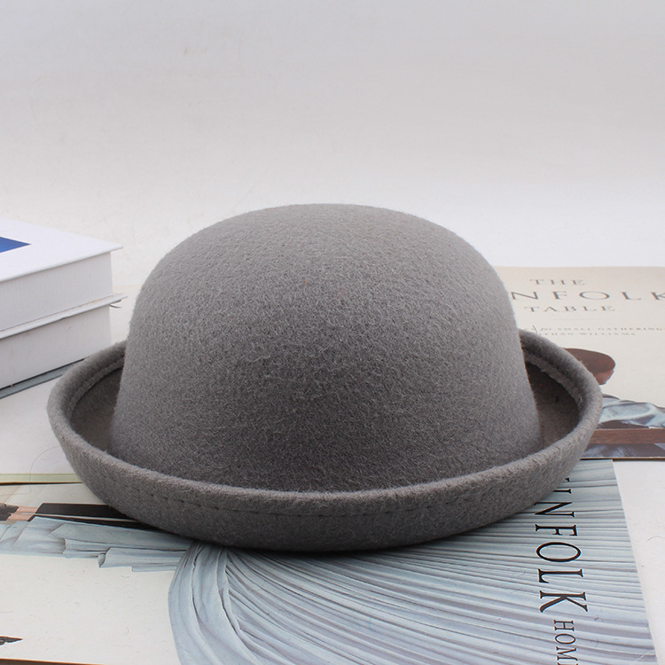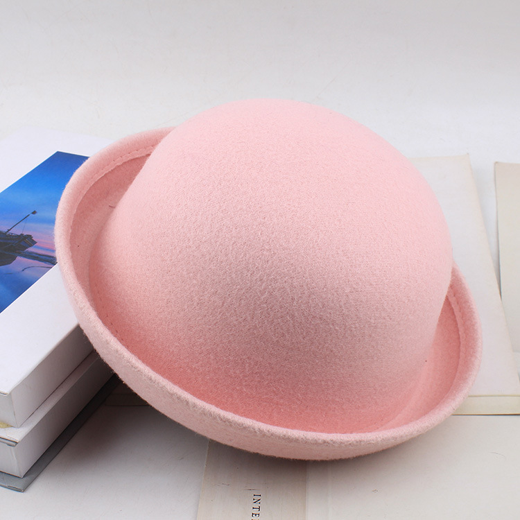 秋冬季韩版潮流仿羊毛定型小圆帽 英伦复古小礼帽圆顶帽子男女带