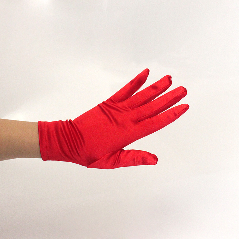 女士短款 防晒 色丁缎手套面 舞蹈表演演出手套 氨纶礼仪手套