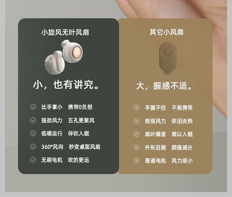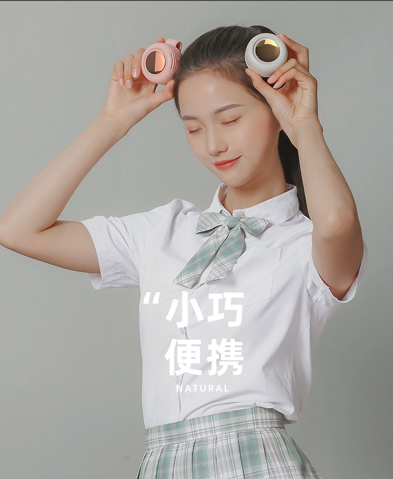 桌面风扇随身便携手持小USB充电颈夹子静音无叶跨境静音手持风扇