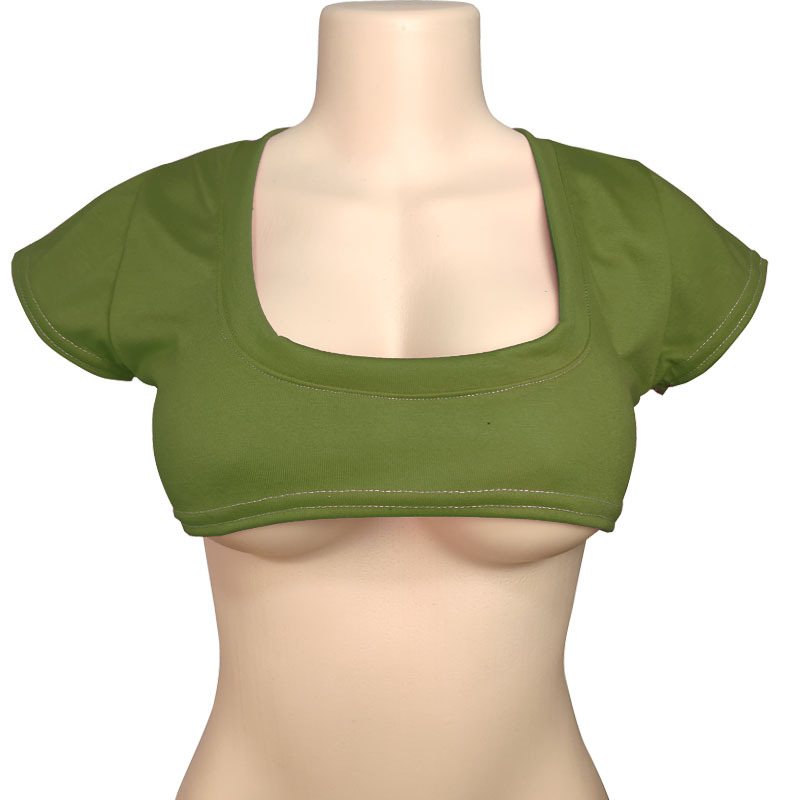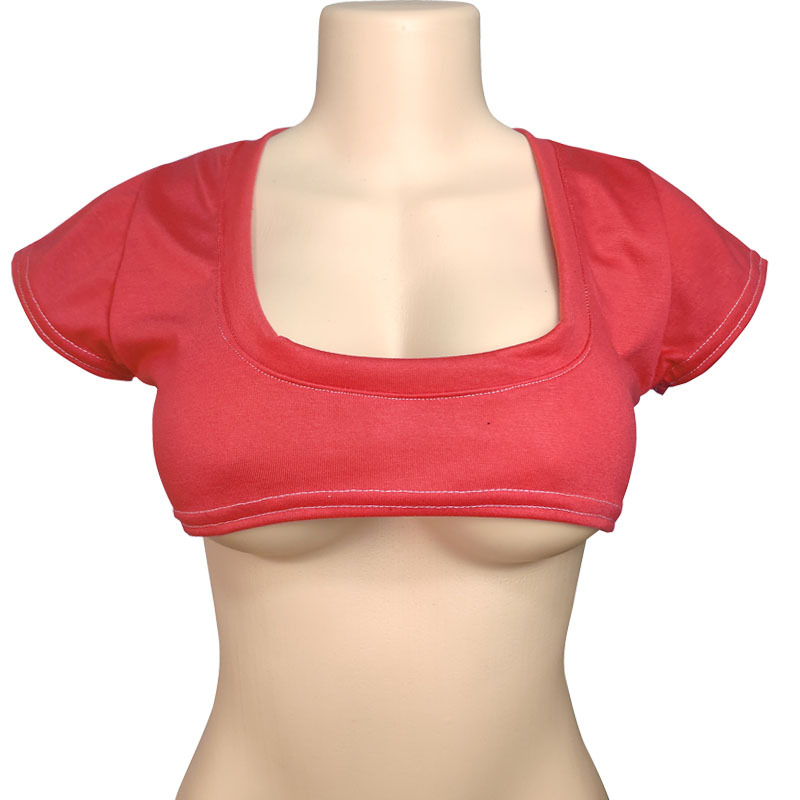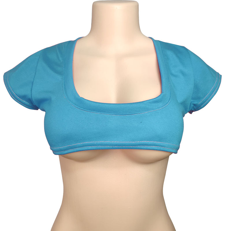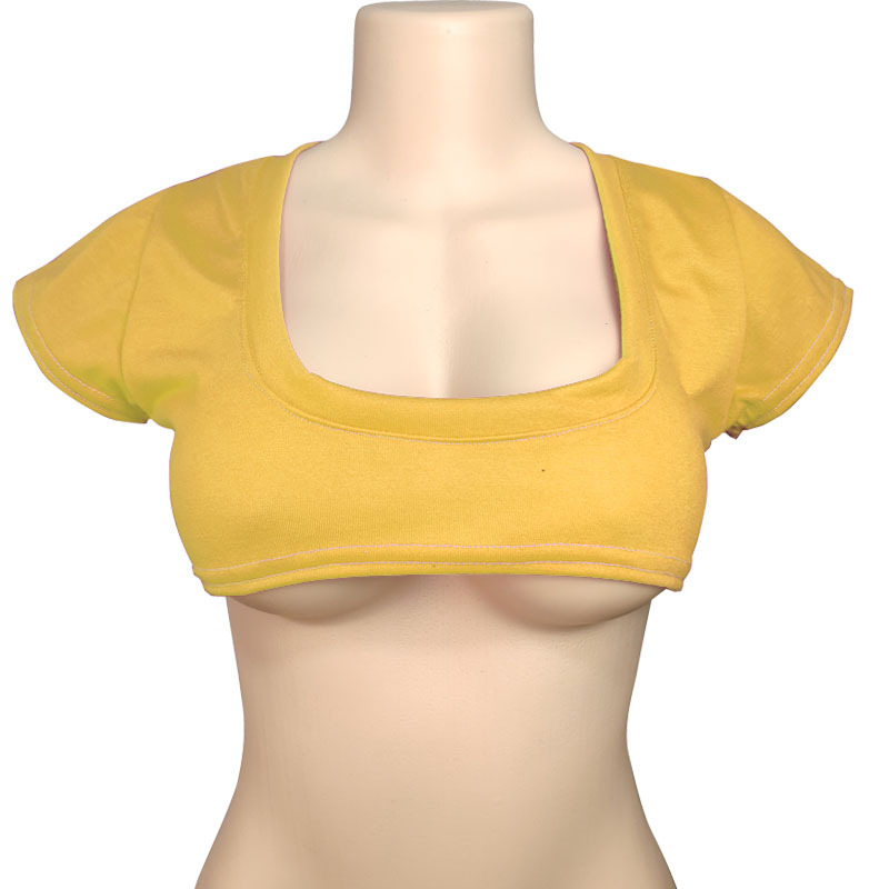 2026跨境二次元纯色半乳短T恤可爱日系性感T恤女短袖露脐T恤漏乳