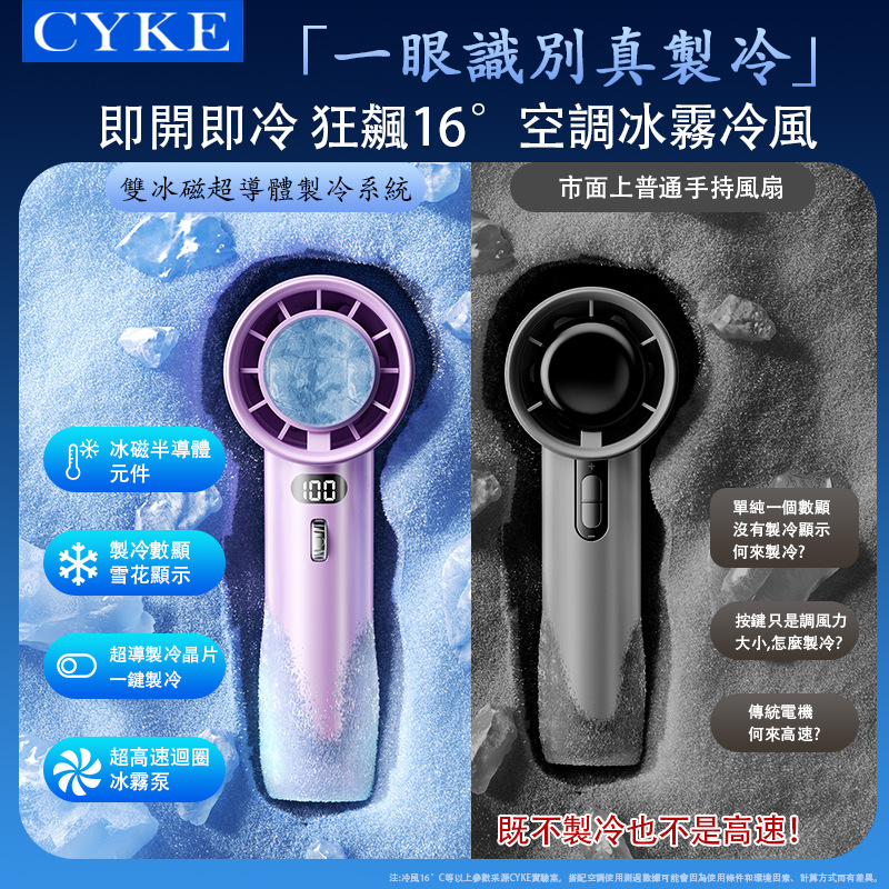 CYKE手持小风扇冰敷制冷暴力风扇高速风扇小巧便携迷你电风扇BSMI