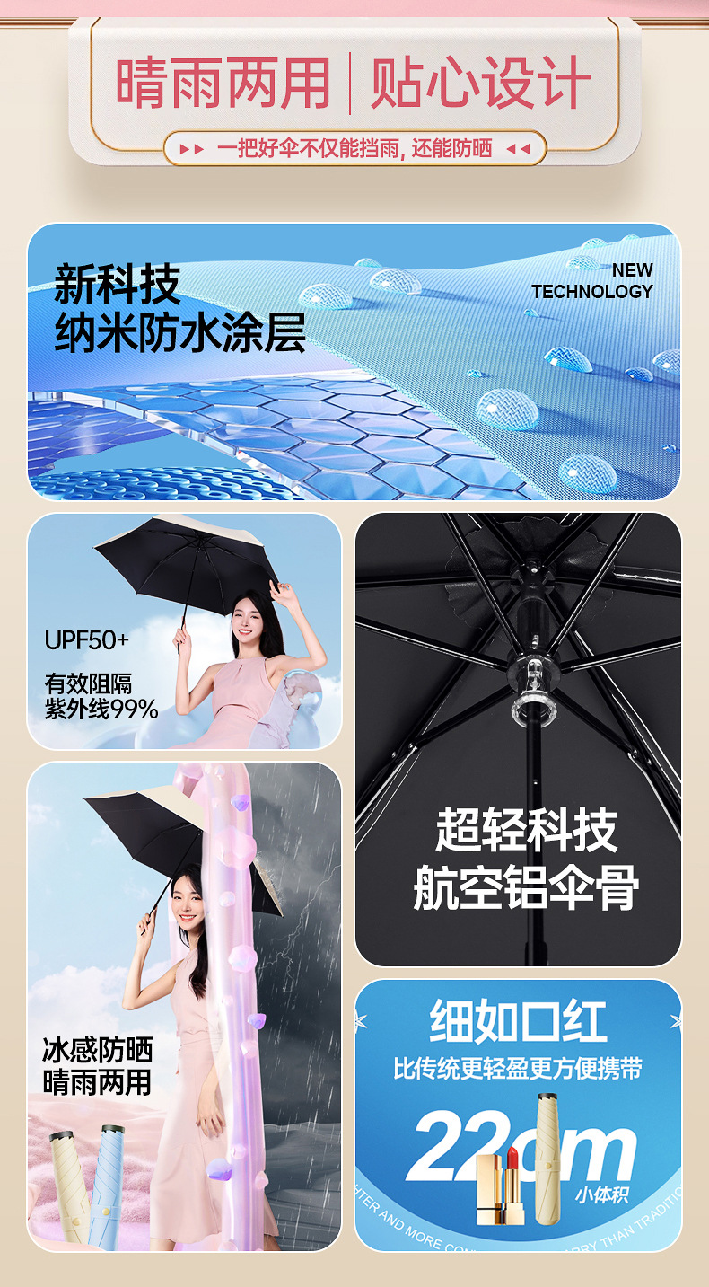碳纤维超轻羽毛伞礼品雨伞女黑胶遮阳伞防紫外线太阳伞日系铅笔伞