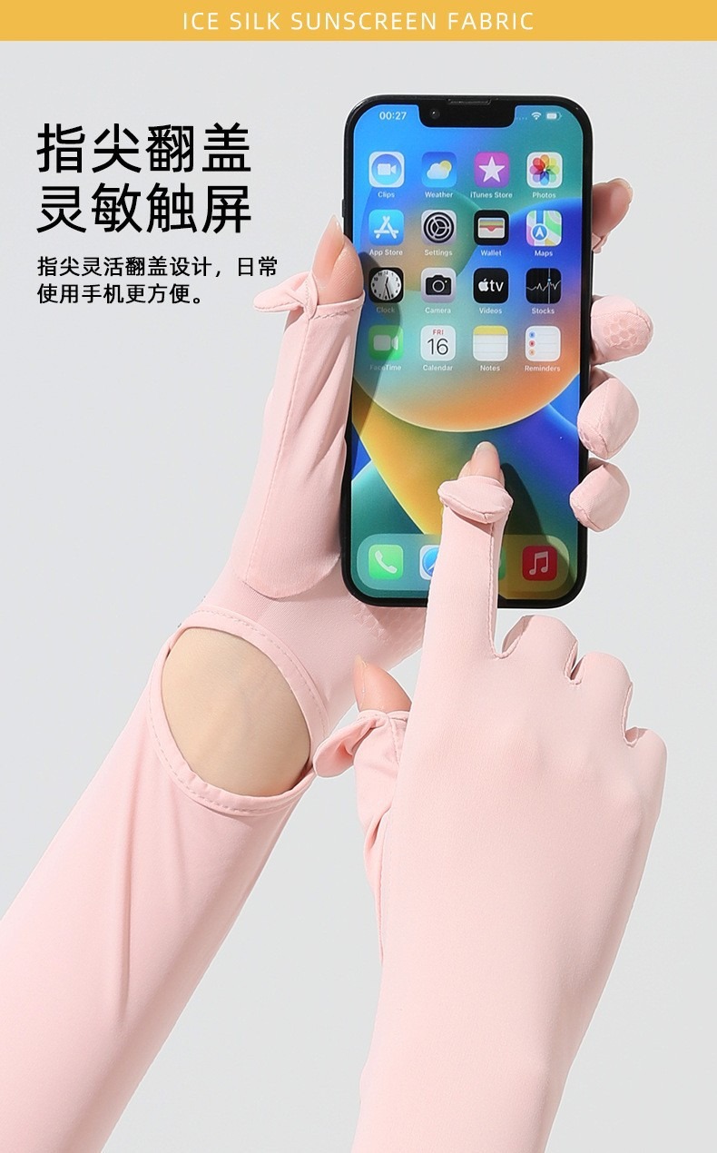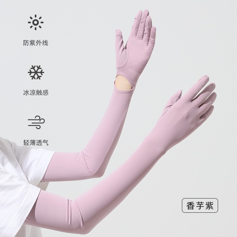 2024夏季防晒袖套女防紫外线户外骑行锦纶冰丝袖加长手套冰丝防晒