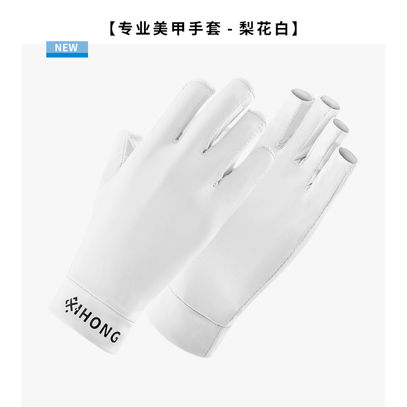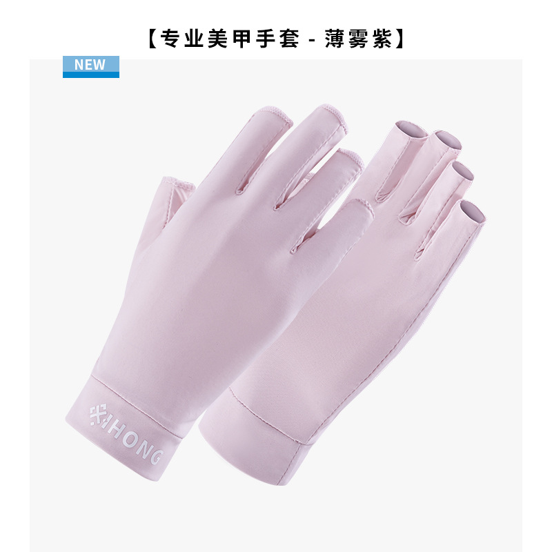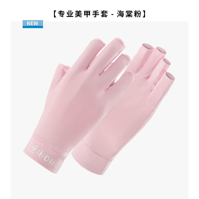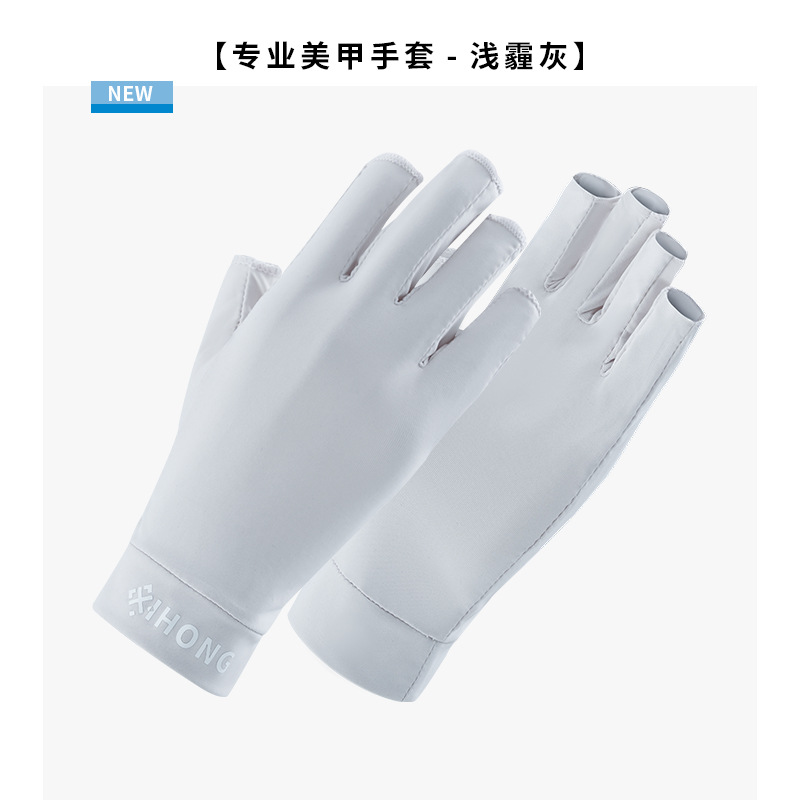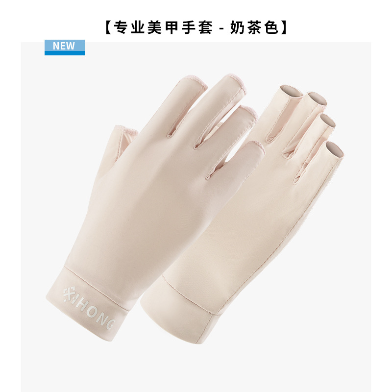 女生舒适美甲手套防烤黑冰丝棉半指露指手套夏季冰感防晒手套批发
