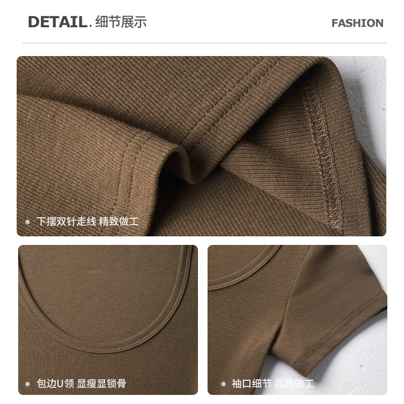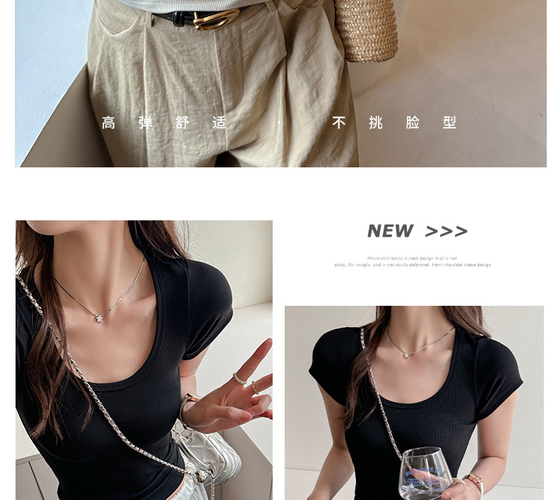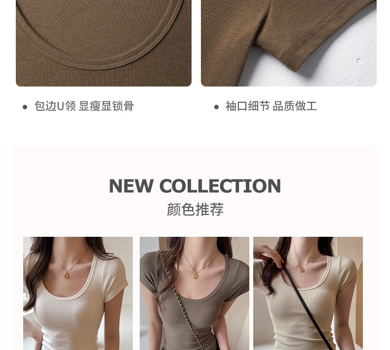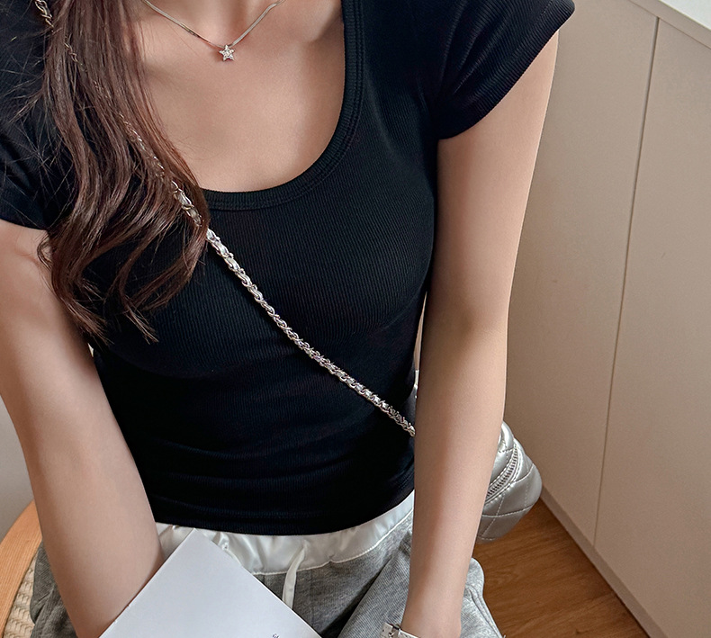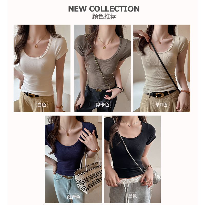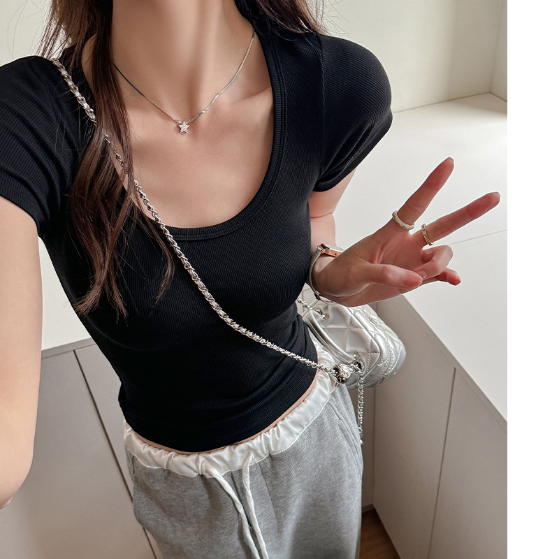 夏季大圆领打底衫女内搭显瘦修身高级感正肩短袖t恤辣妹T恤上衣