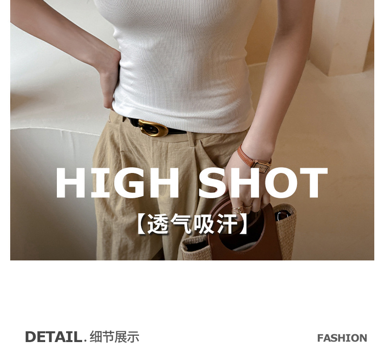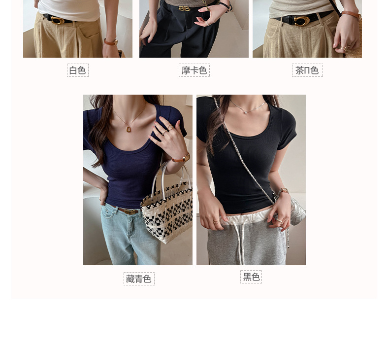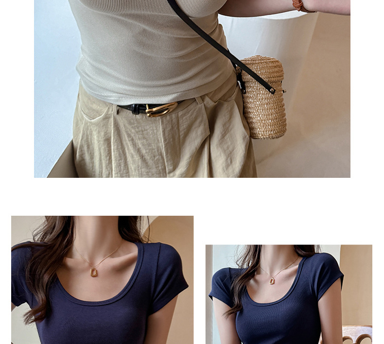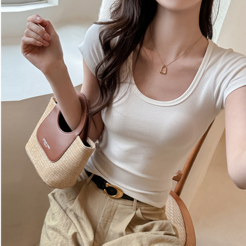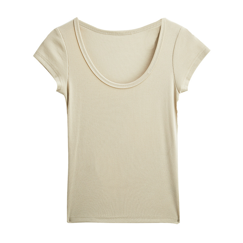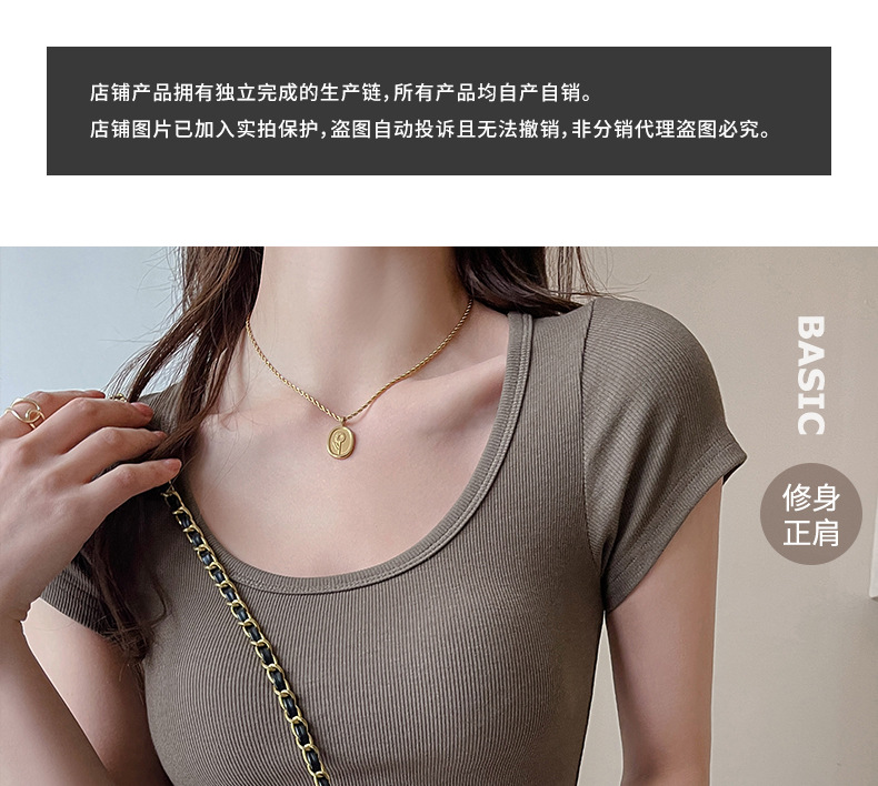 夏季大圆领打底衫女内搭显瘦修身高级感正肩短袖t恤辣妹T恤上衣