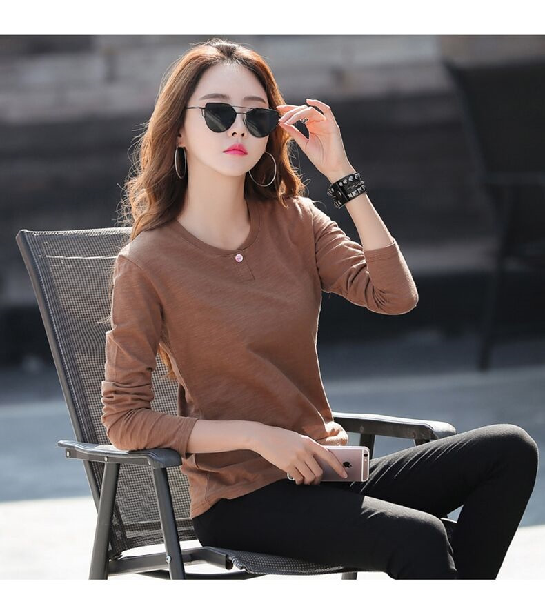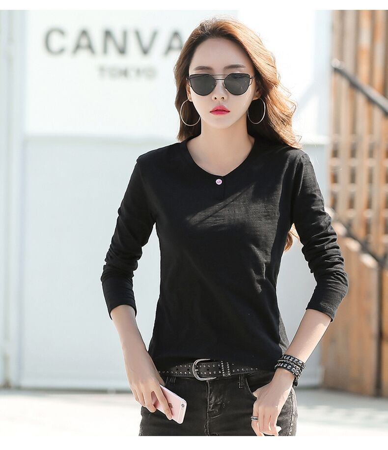 2025秋冬新款韩版长袖t恤女修身显瘦百搭打底衫上衣简约内搭减龄