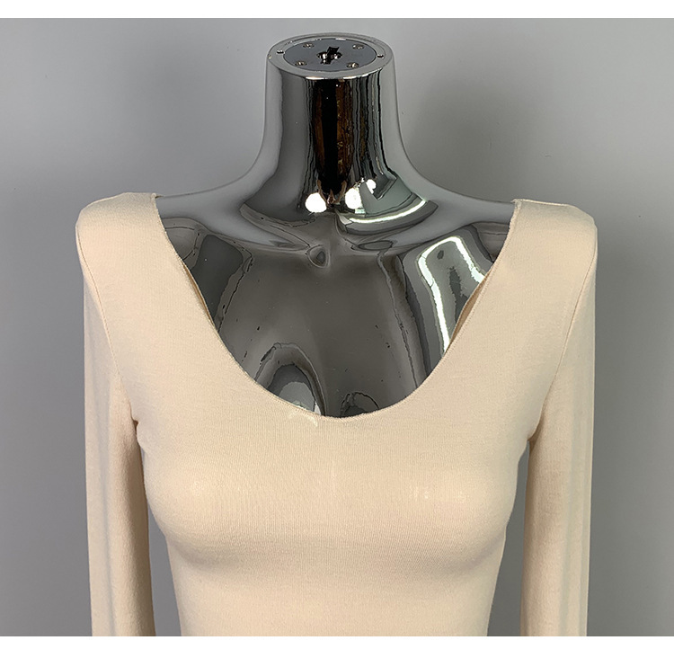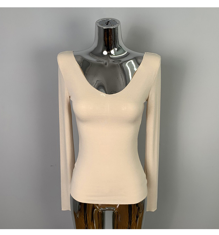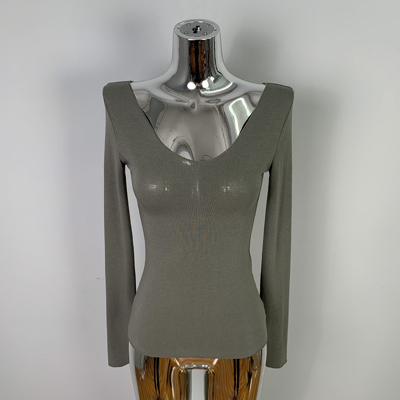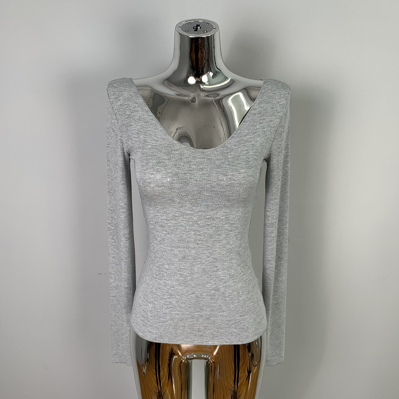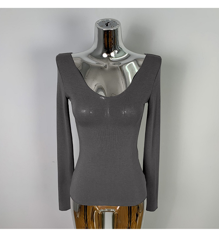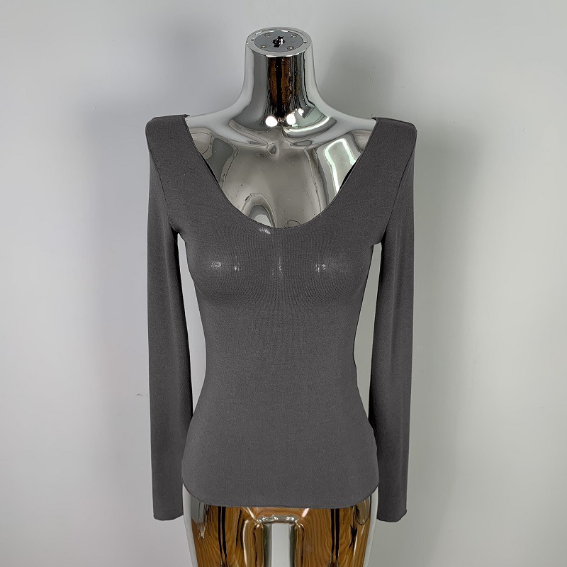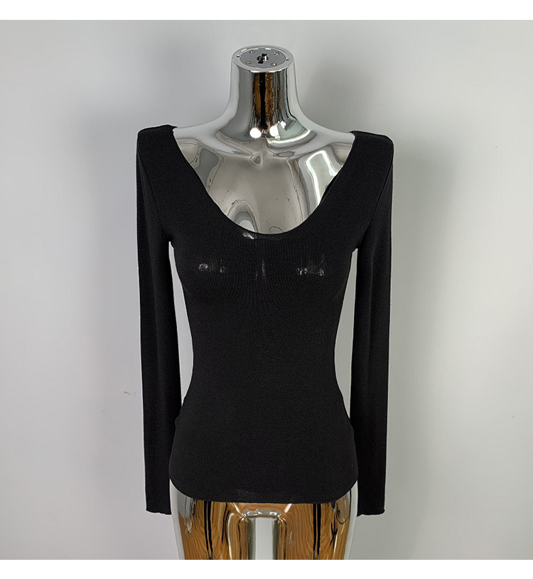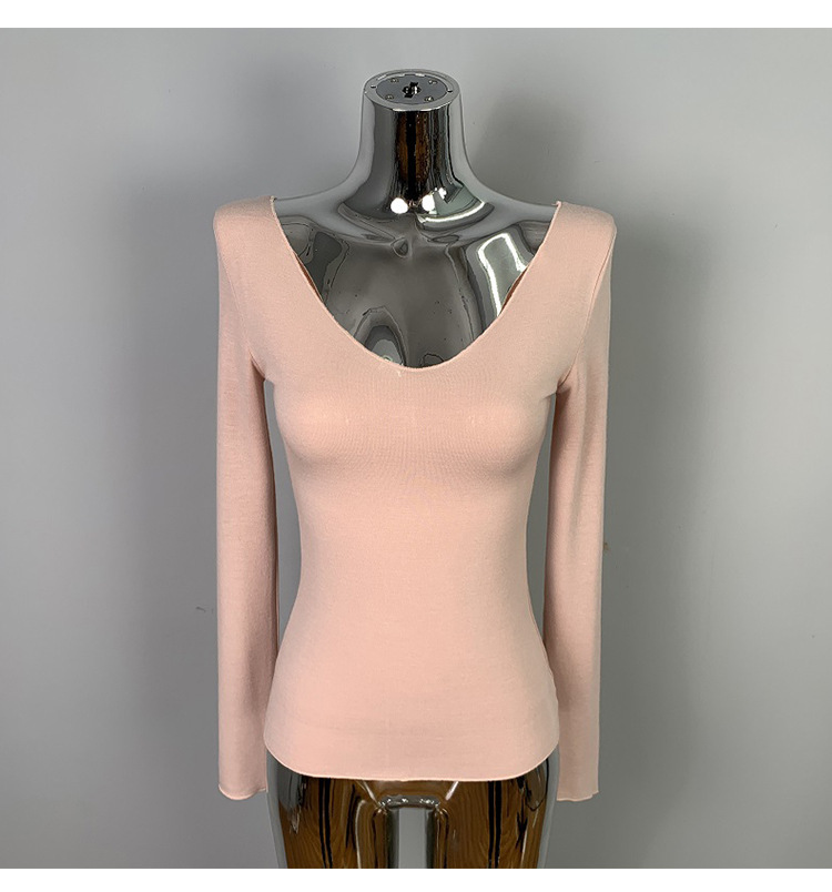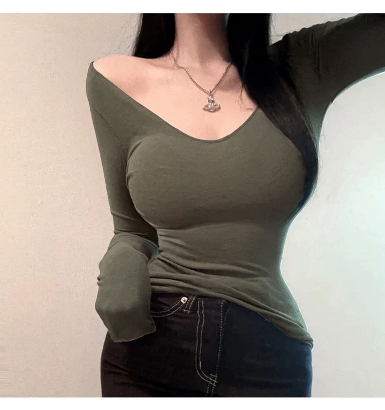 韩国东大门修身显瘦性感低胸女人味微透显身材亲肤长袖T恤上衣潮