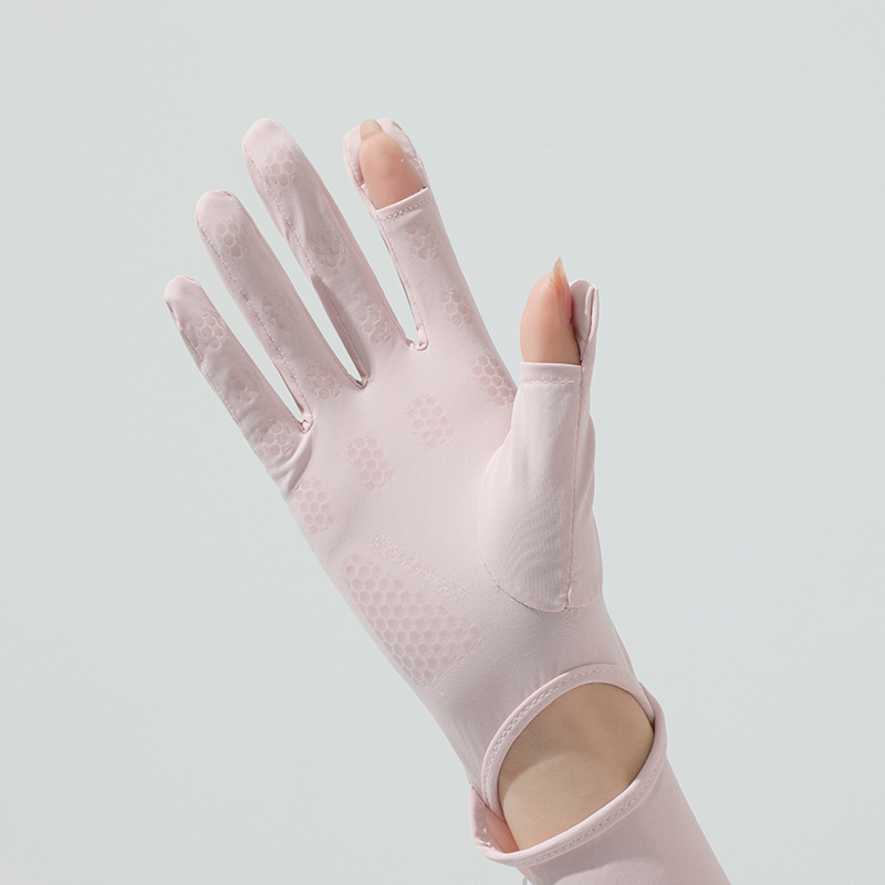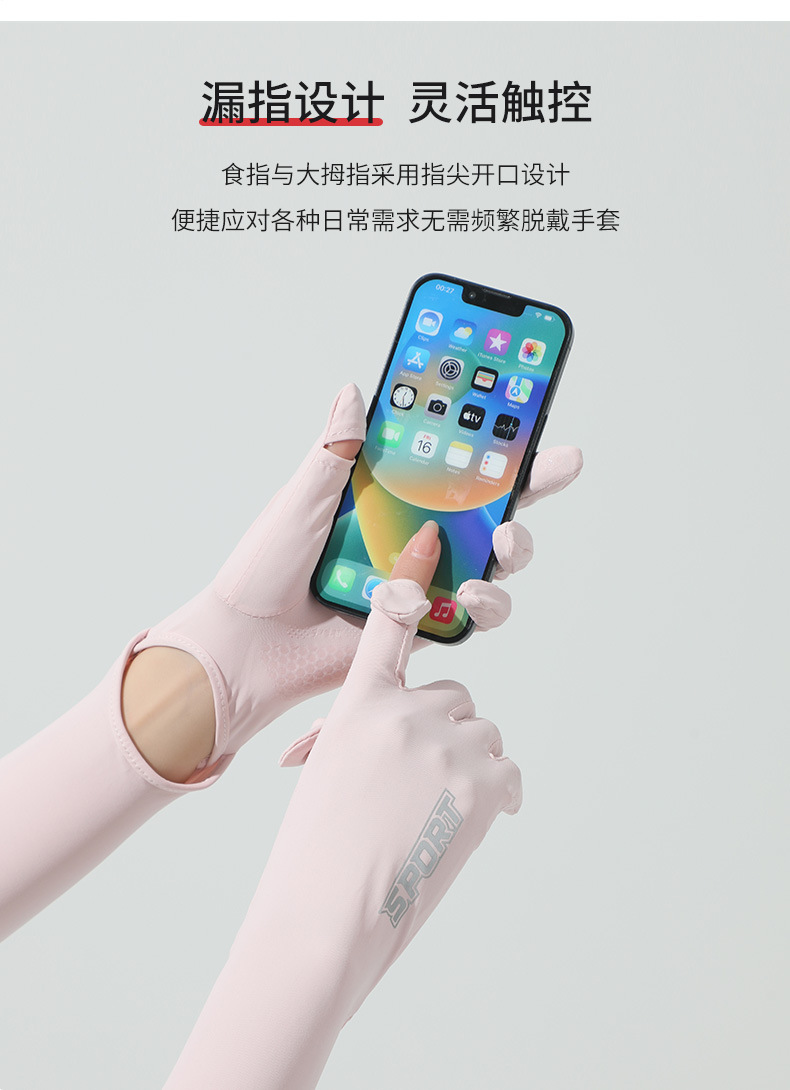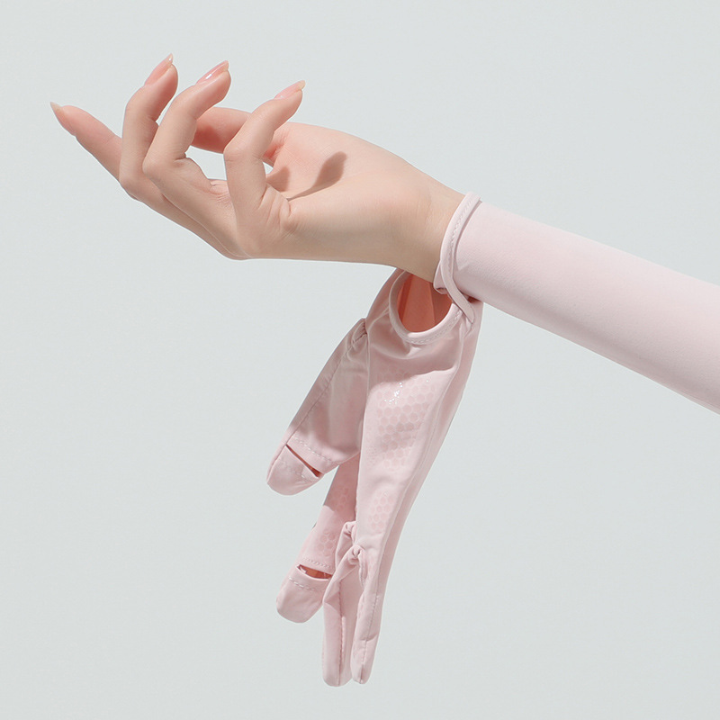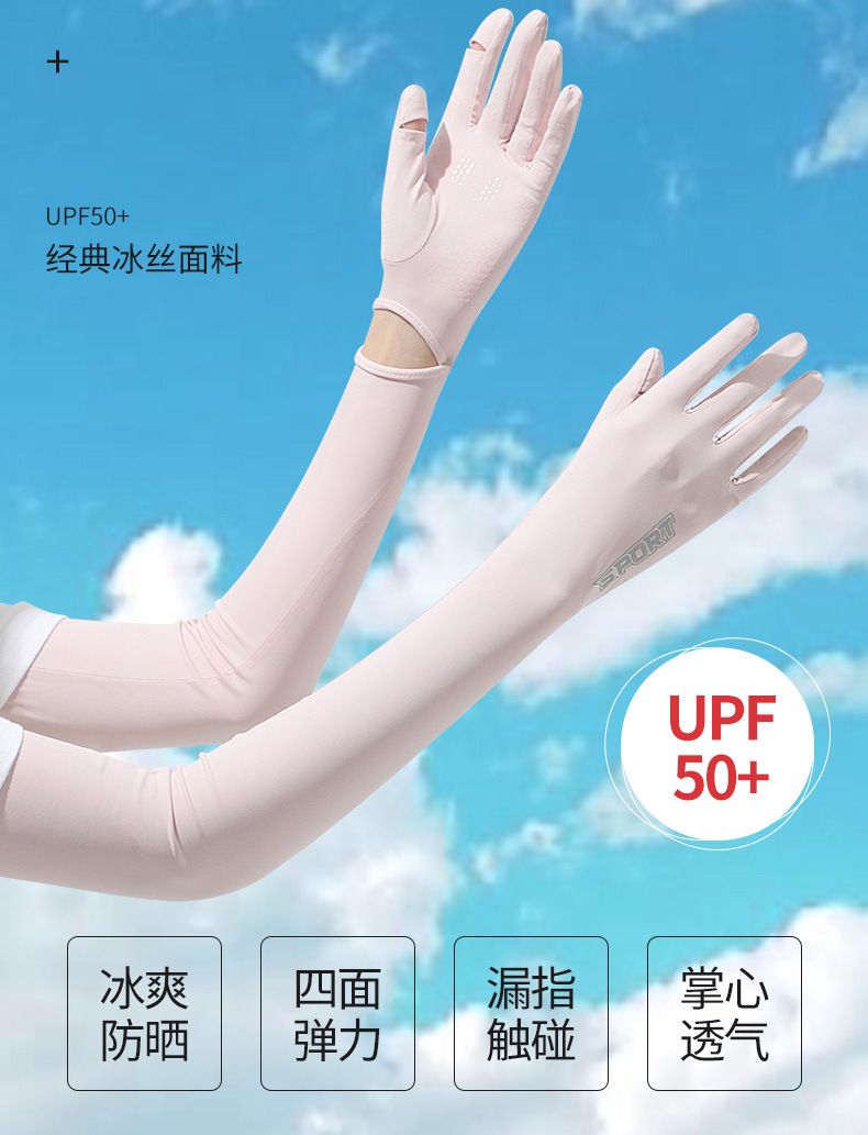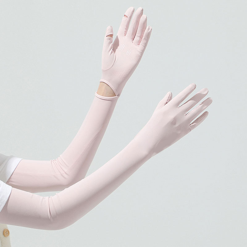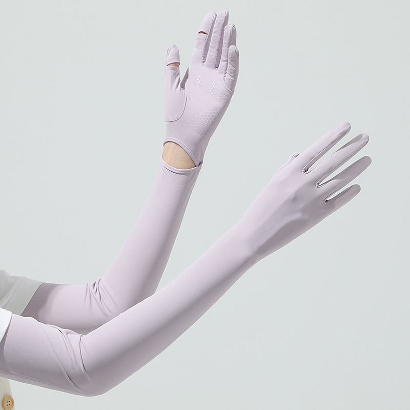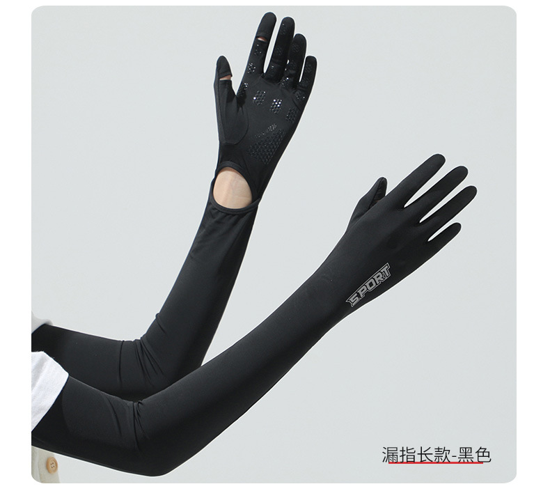 源头批发夏季女长款冰丝防晒手套女防紫外线袖套户外出行翻盖手套
