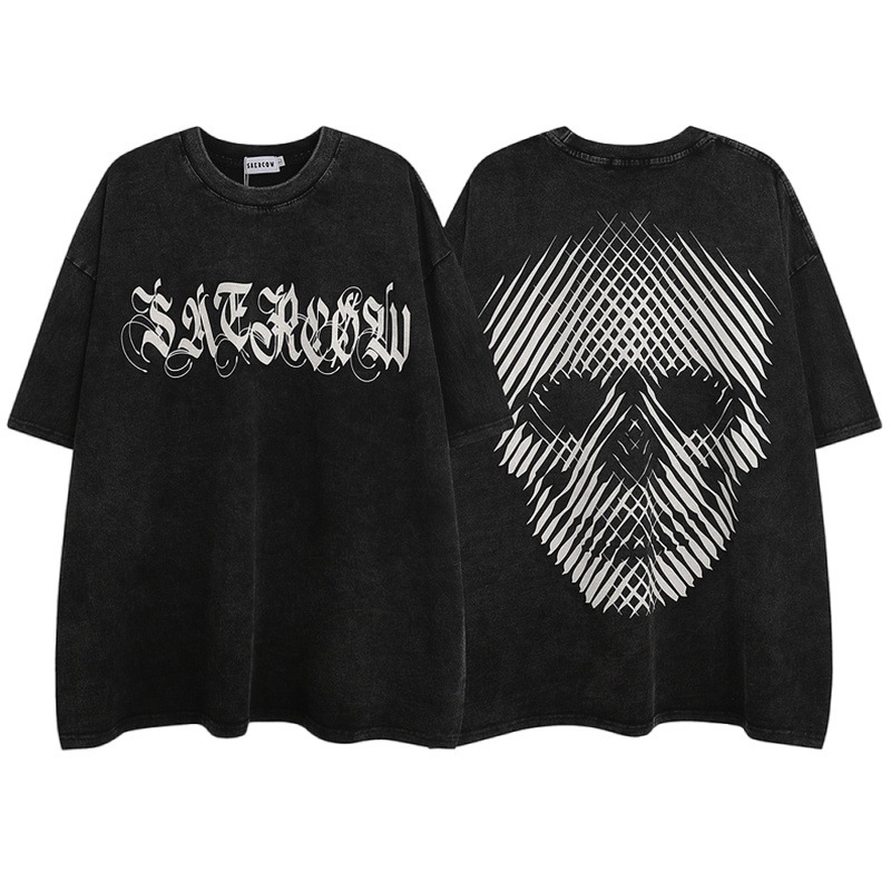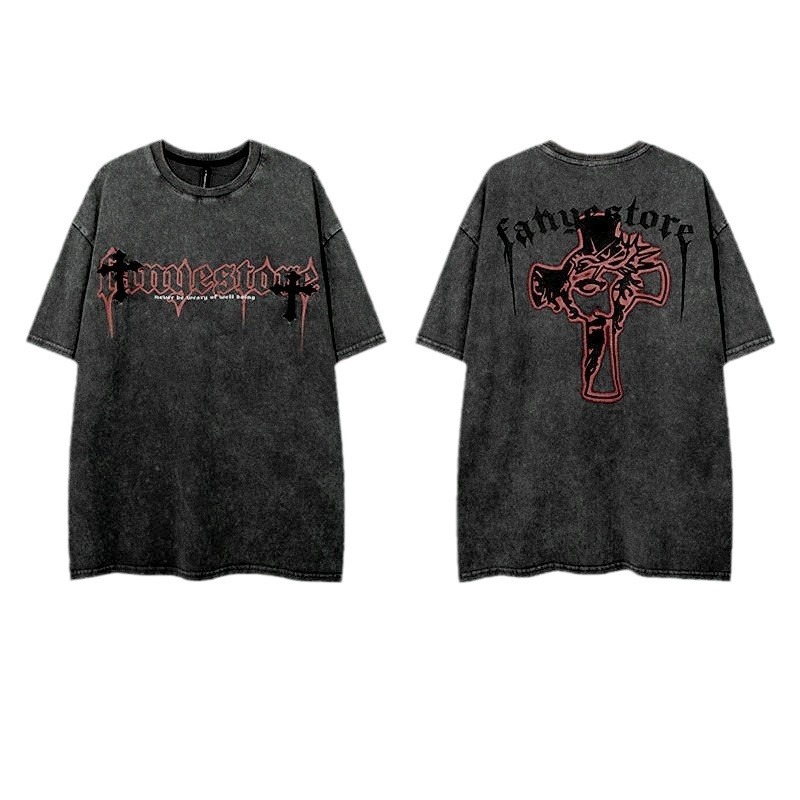 独立站外贸水洗短袖印花t恤夏季休闲情侣宽松半袖上衣服跨境批发