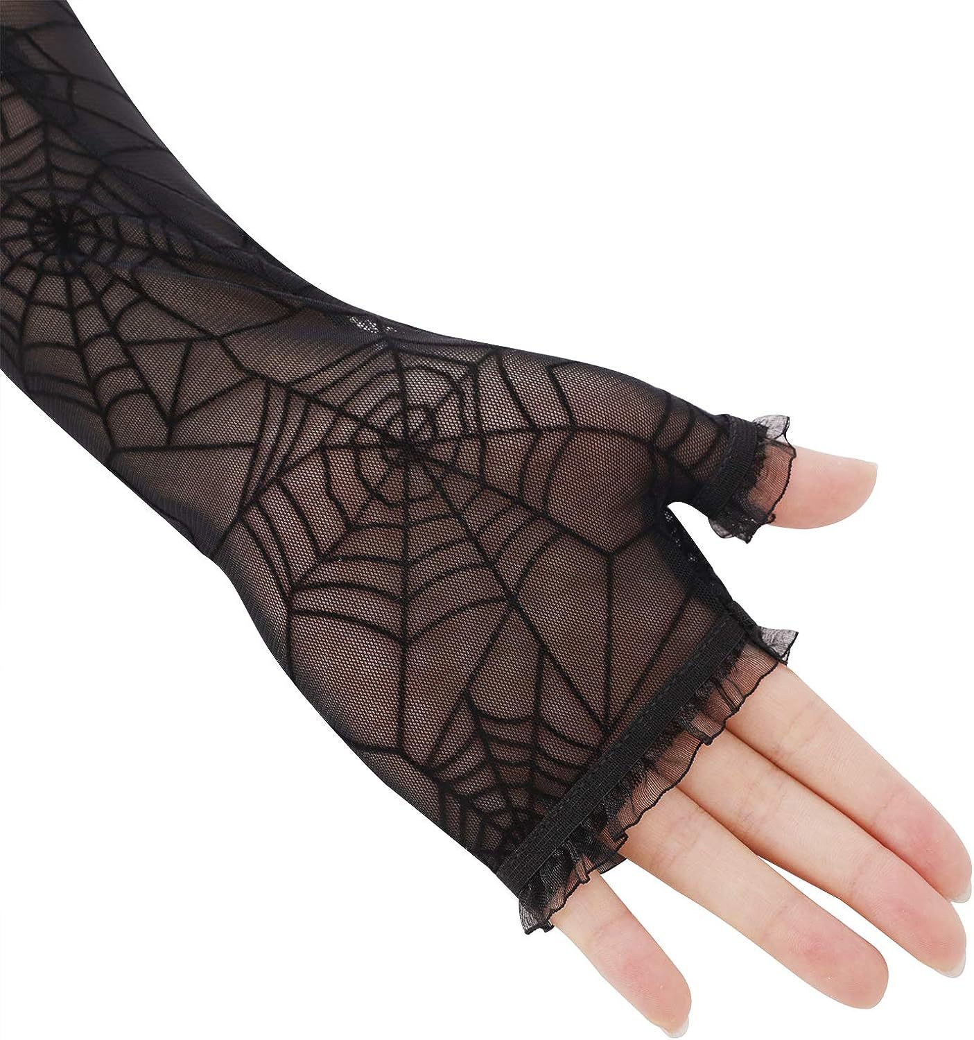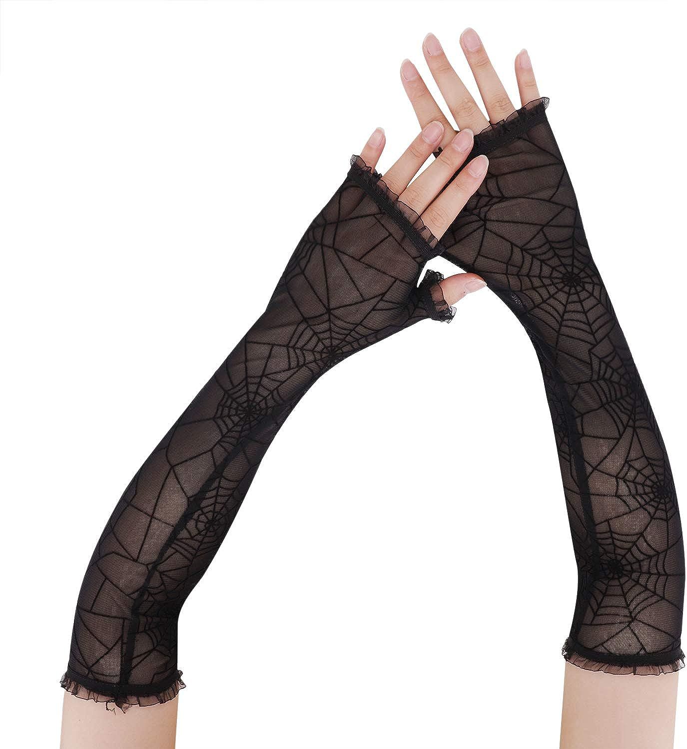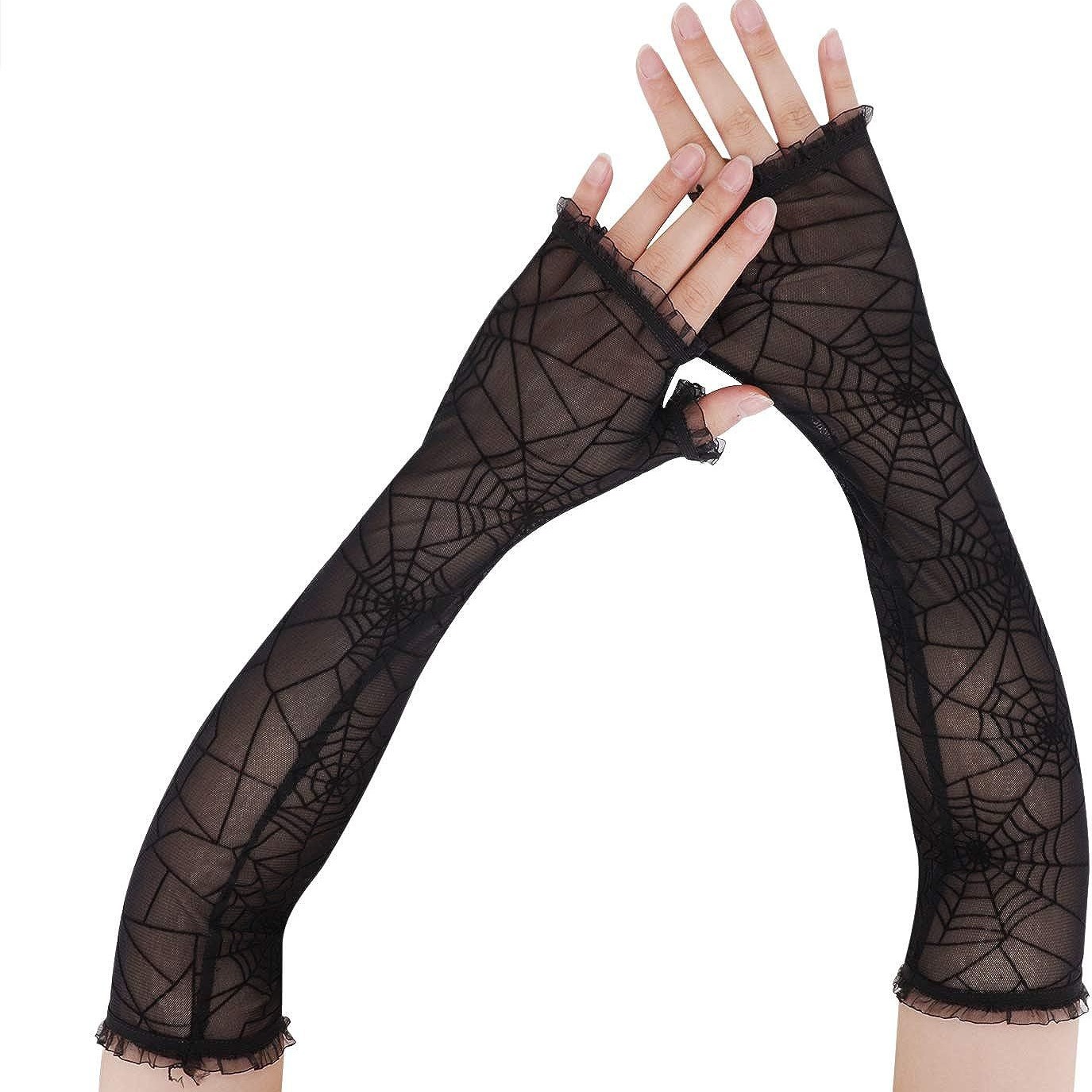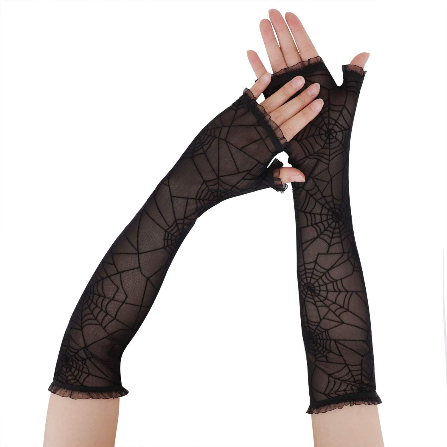 万圣节暗黑丧系朋克蜘蛛网长款半指手套女ins潮蕾丝花边防晒袖套
