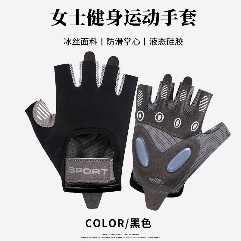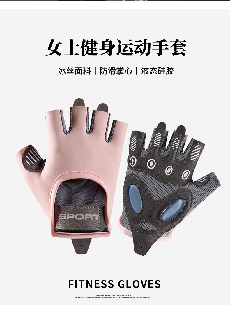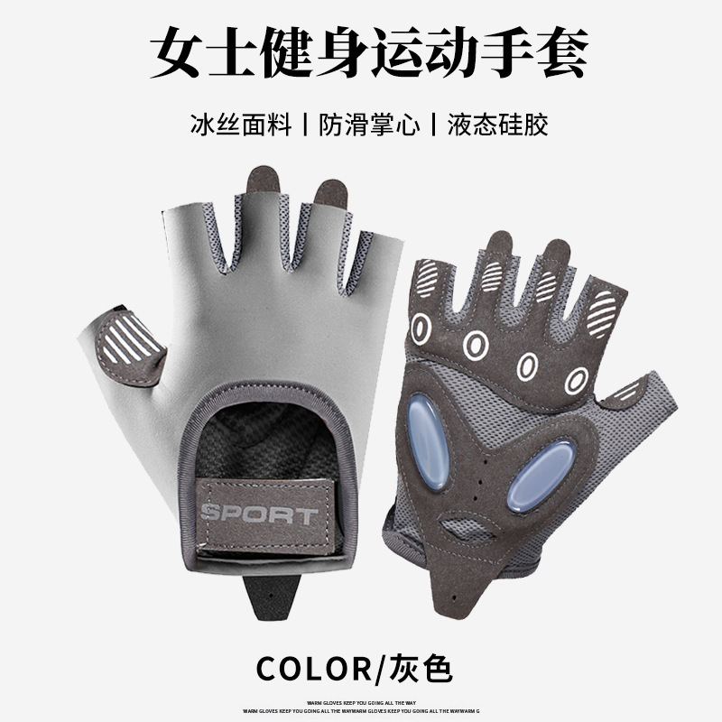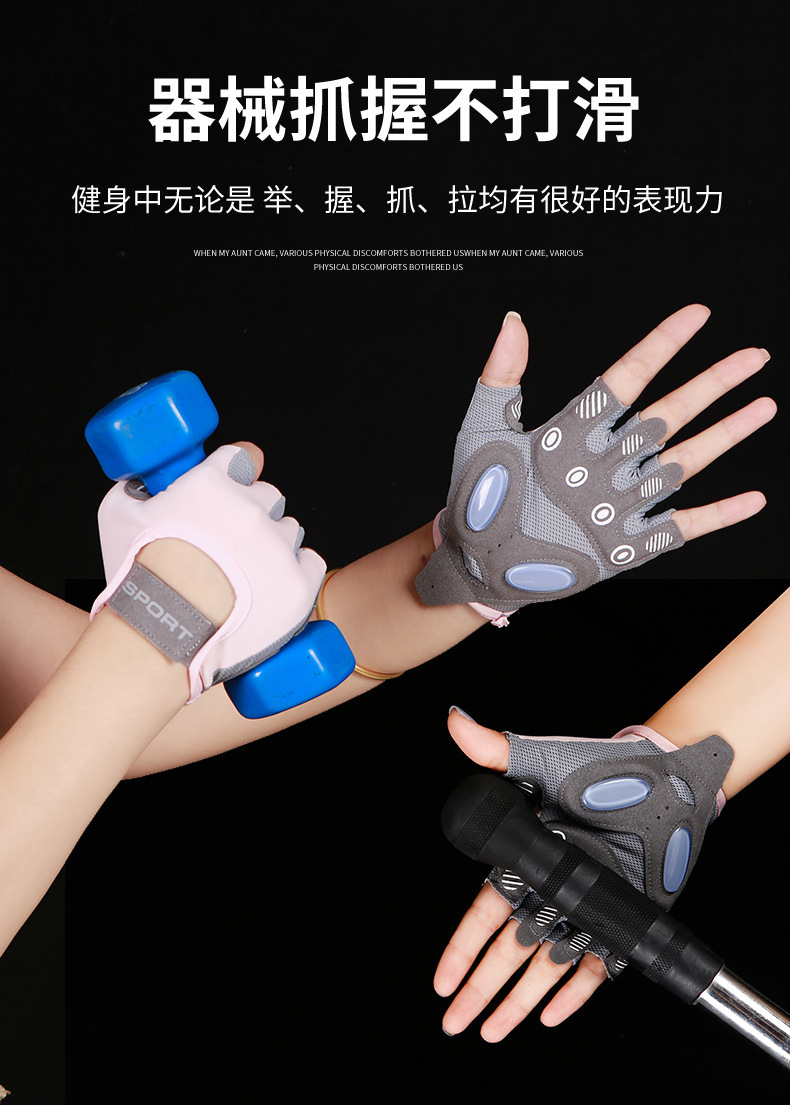 运动手套女撸铁瑜伽防滑气垫减震半指手套冰丝透气耐磨健身手套男