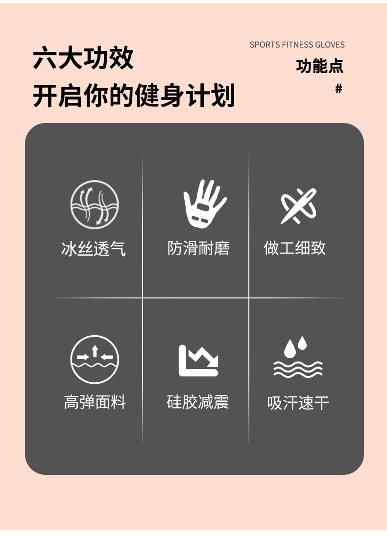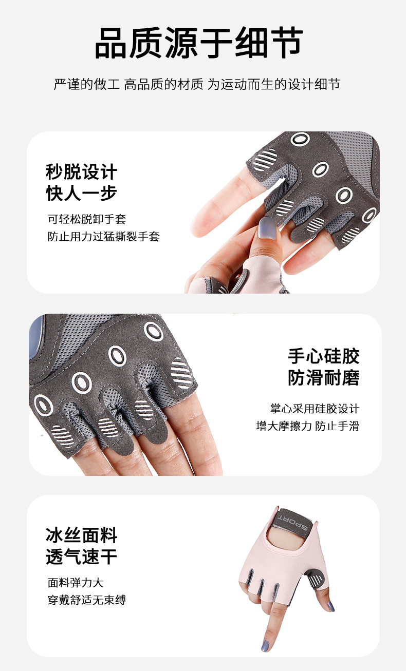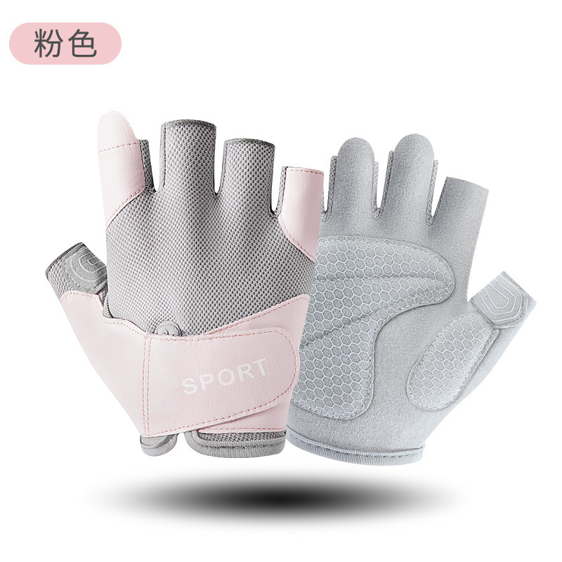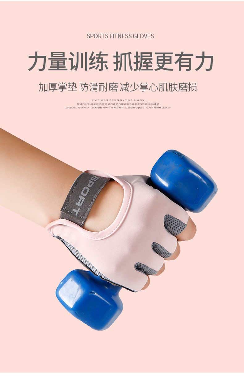 运动手套女撸铁瑜伽防滑气垫减震半指手套冰丝透气耐磨健身手套男