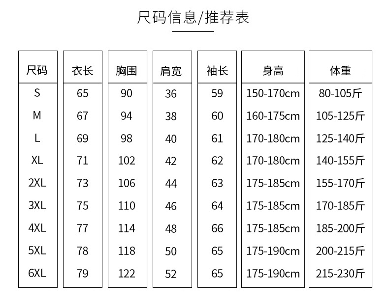 | 6XL:建议210-230斤 | USD $0.0 | 1000 piece available |