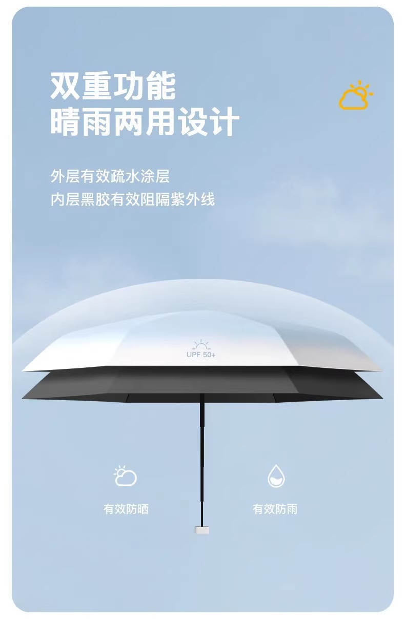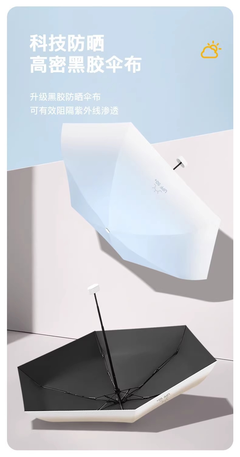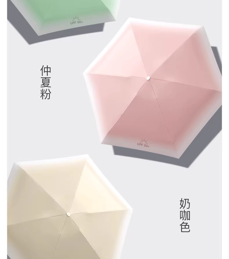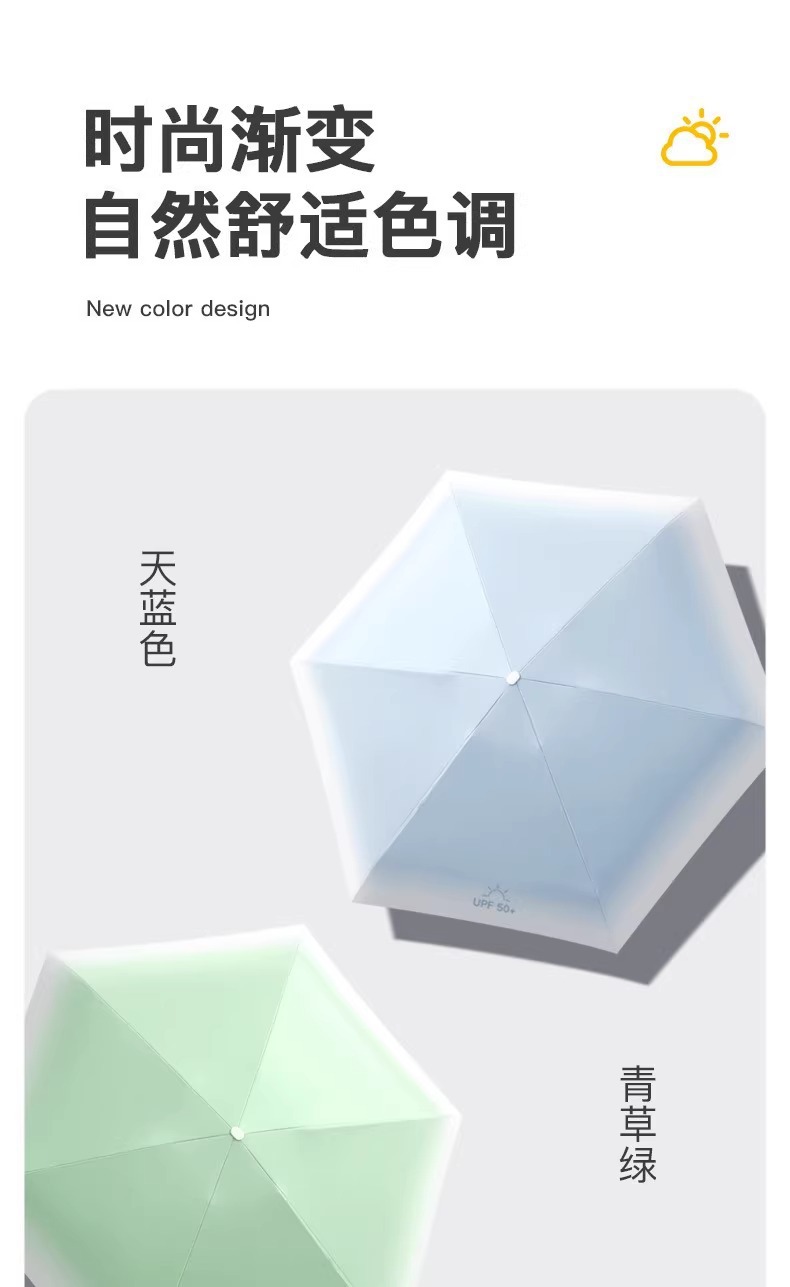 新款渐变扁六折口袋伞黑胶防晒防紫外线遮阳伞便携式晴雨两用雨伞