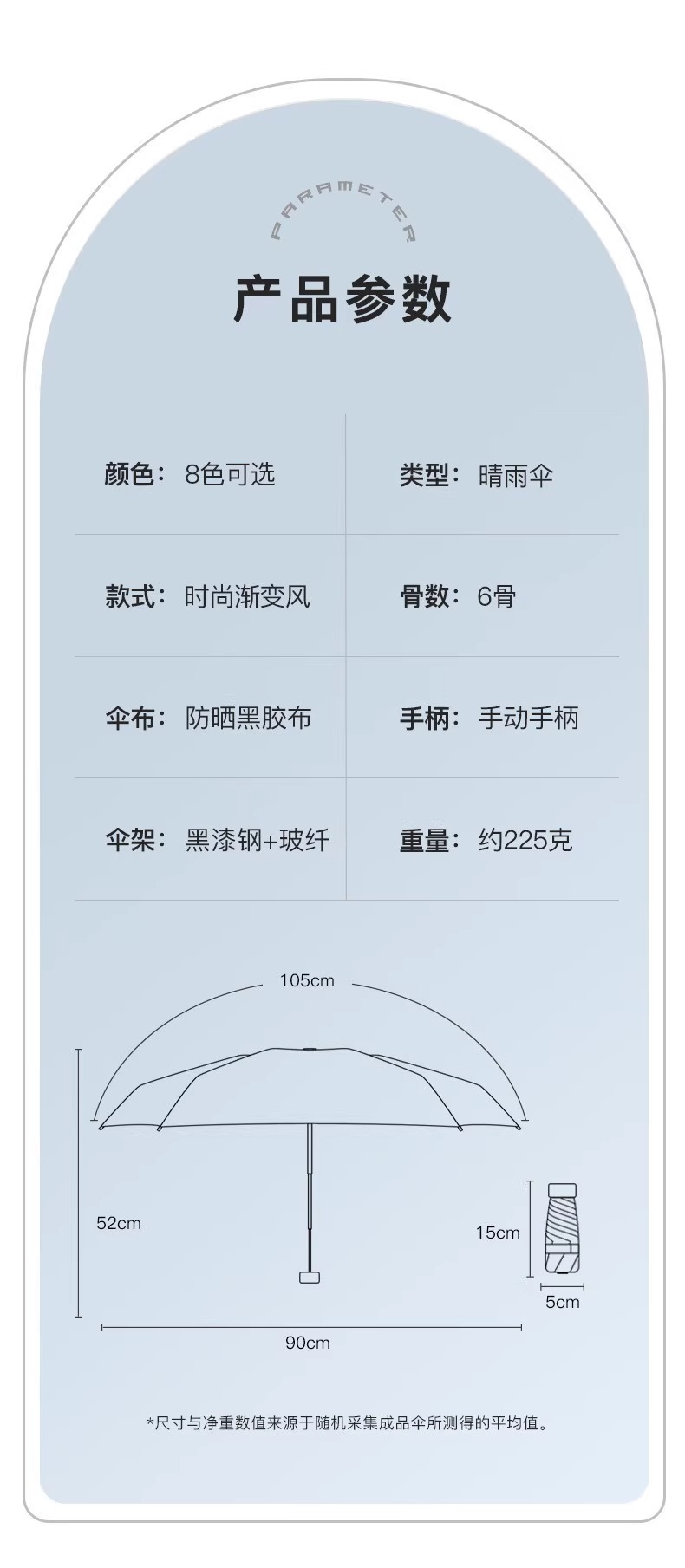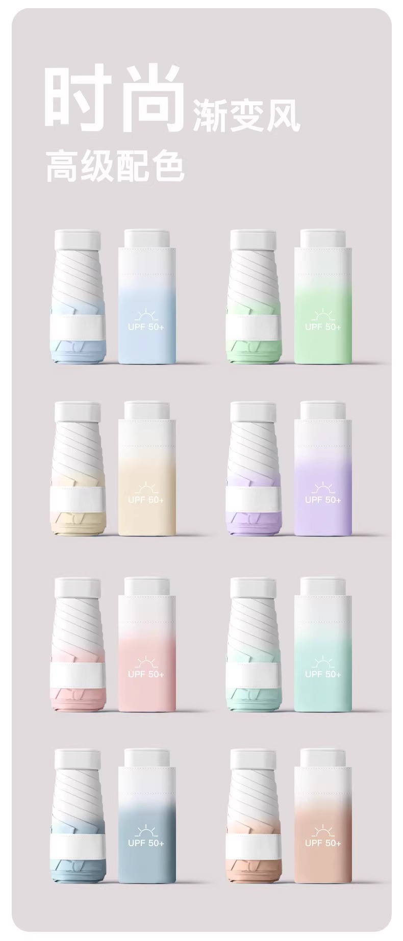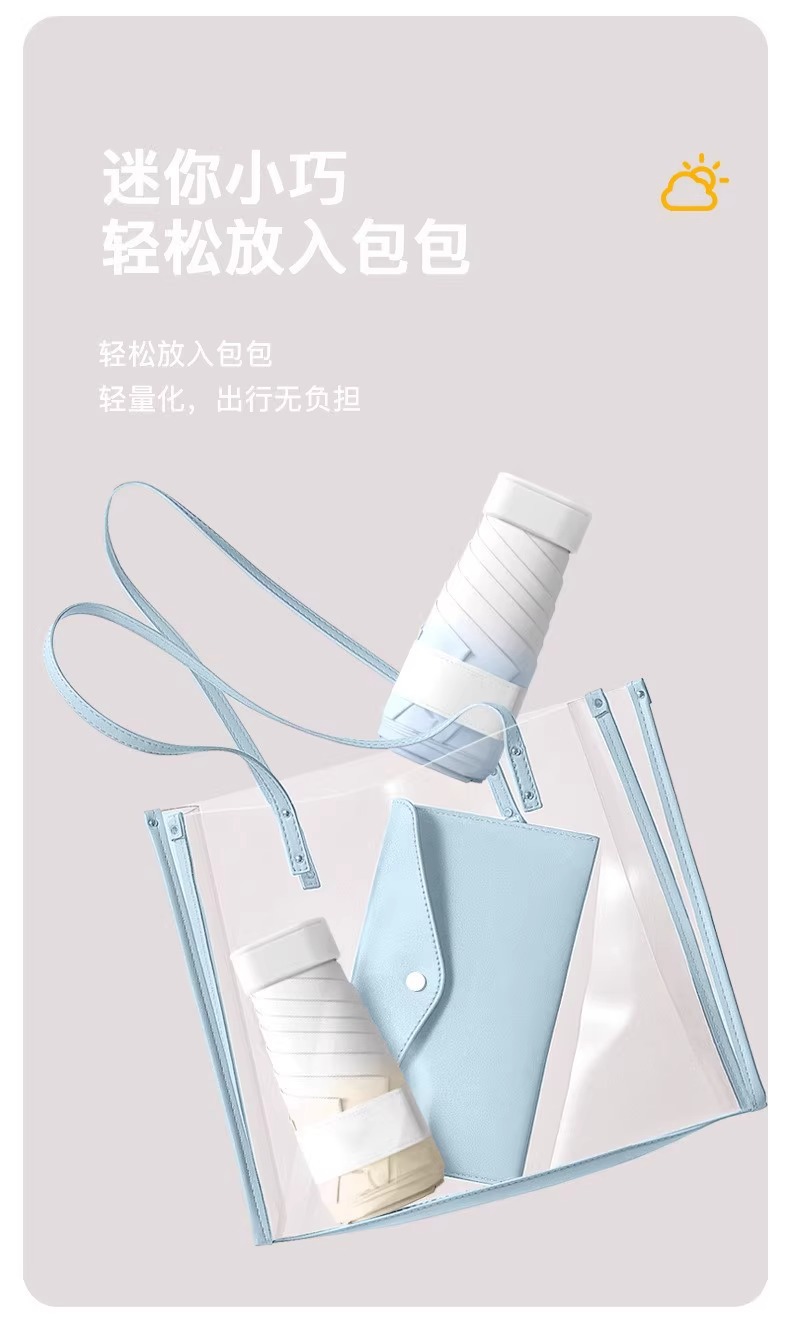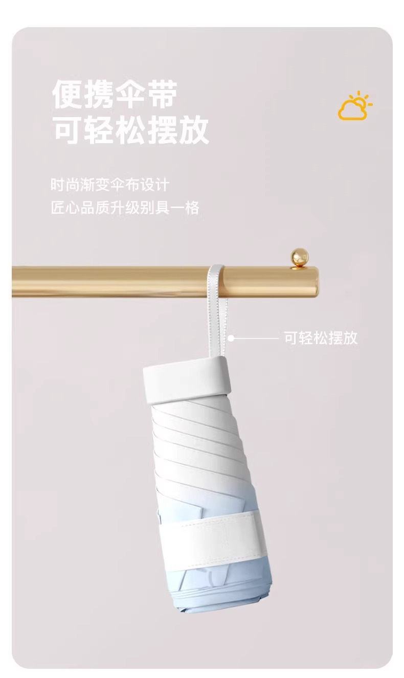新款渐变扁六折口袋伞黑胶防晒防紫外线遮阳伞便携式晴雨两用雨伞